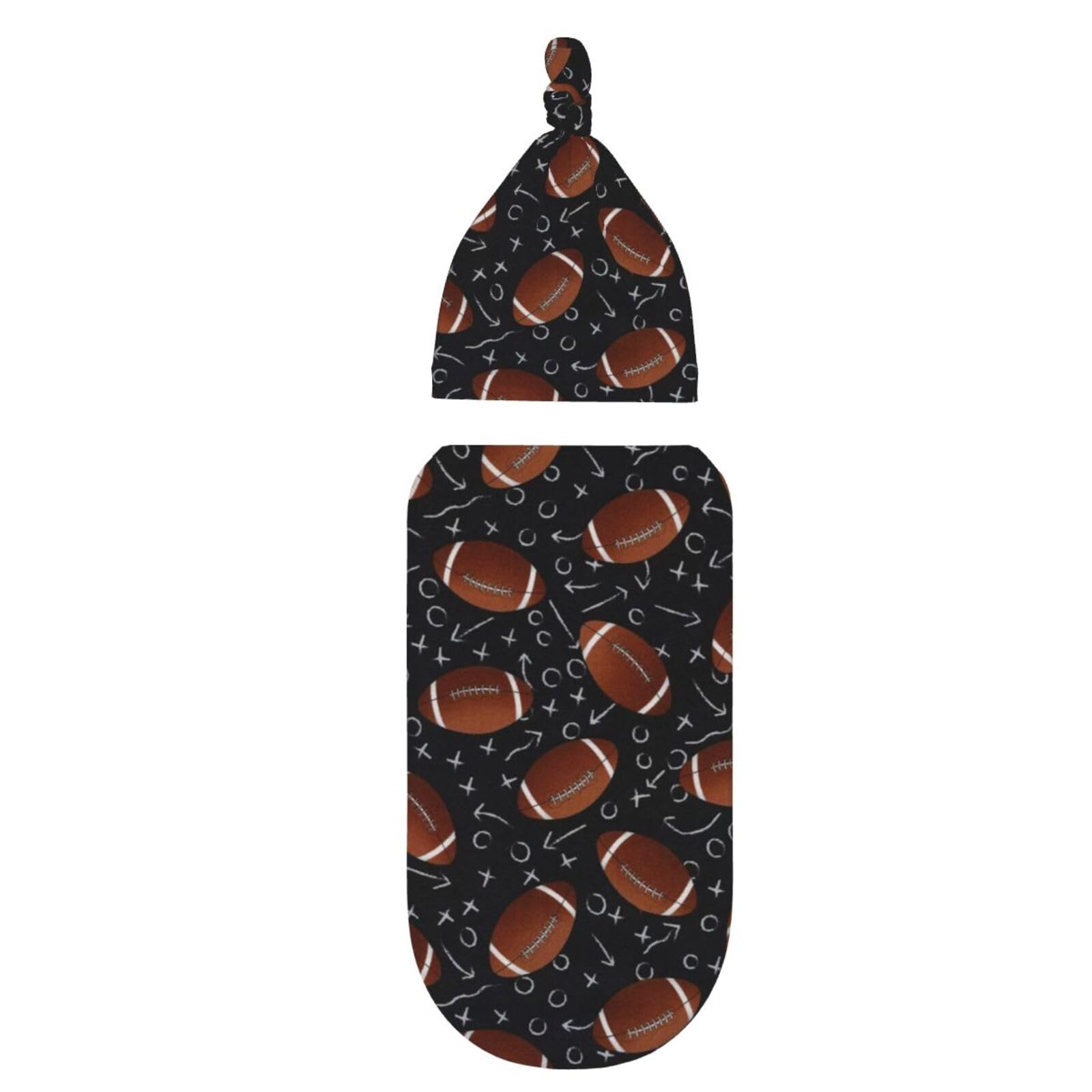 Perfect Size: Swaddle Blanket Is 11.4*20.8 In, Newborn Hat Is 6.5*13 In. This Boys Football Swaddle Blanket Is Suitable For Babies Aged 0-6 Months. Beanie Hat Has An Adjustable Knot On The Top, Which Can Be Tightened Or Loosened As Needed To Ensure Comfort For Newborns