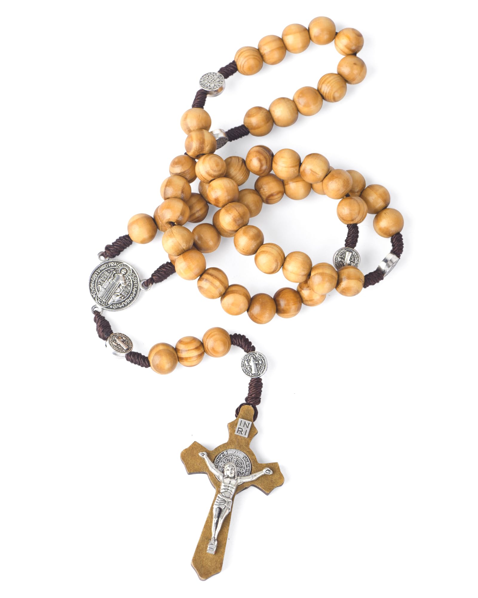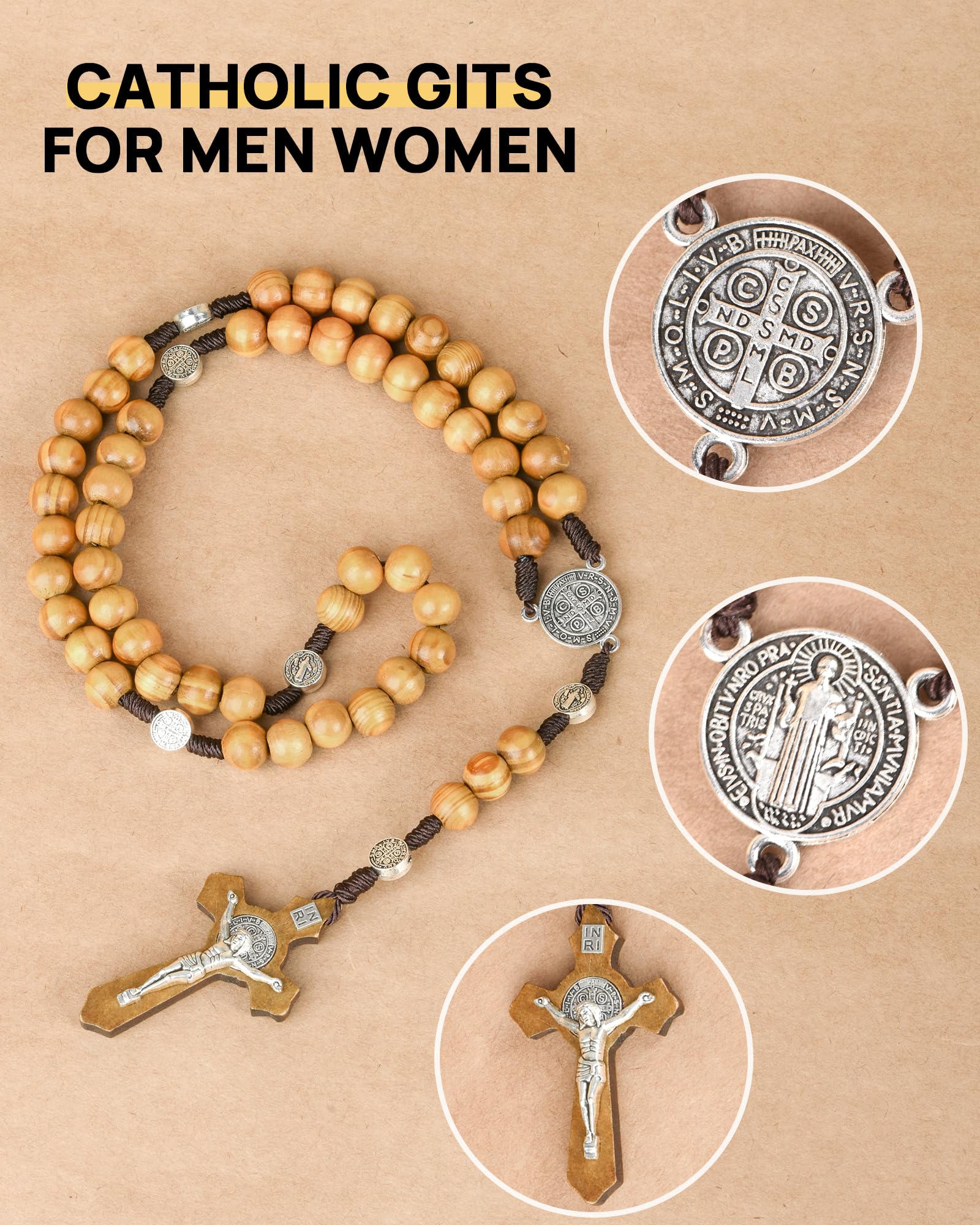 【Prayerfully handmade】The rosary is divided into wooden beads and a small order of saint benedict linked with a cross pendant