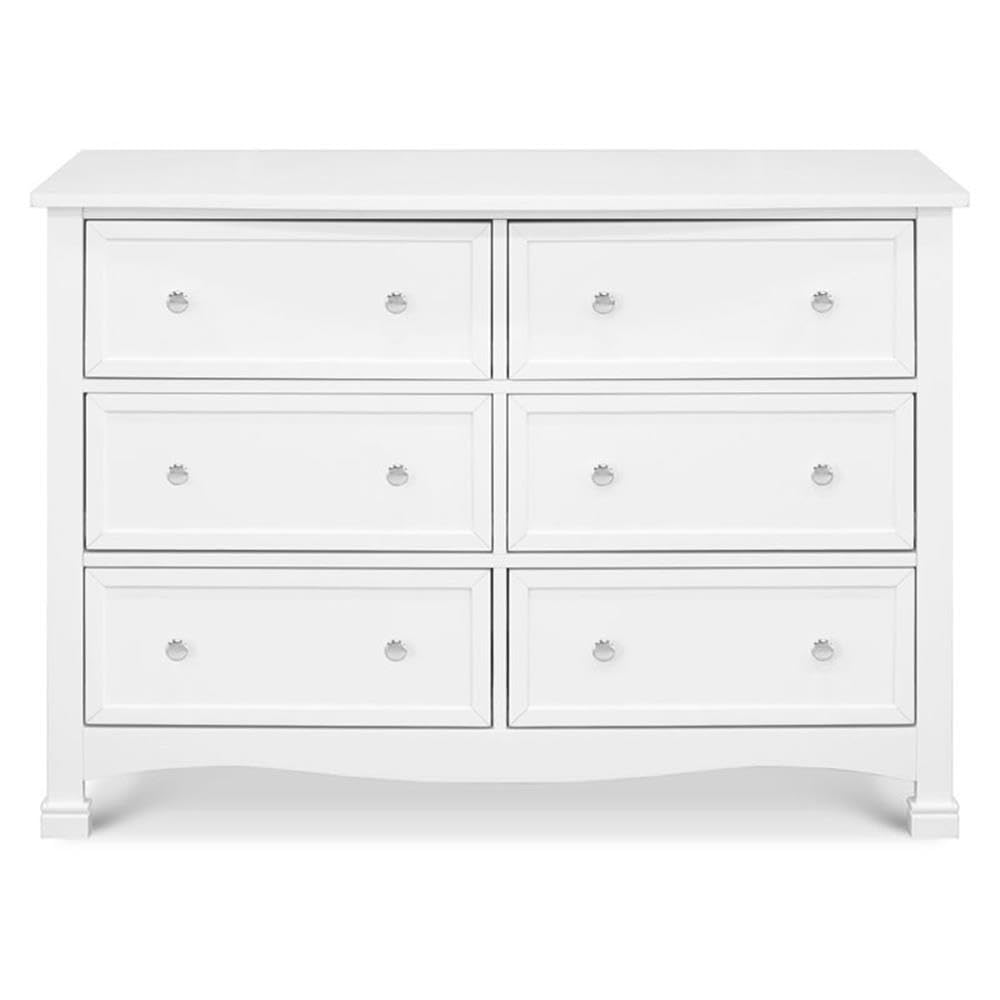 At , we beautifully crafted baby furniture that transforms nurseries into warm and inviting spaces. Our versatile and durable Kalani newborn dresser is crafted with love for kids. This dresser isn’t just furniture; it’s a cherished part of your family’s journey, holding precious memories and keeping everything you need close at hand. Timeless for Any Nursery Theme: This double dresser is detailed with recessed front drawer panels, a gently curved apron front, and curved top sides. With its modern yet timeless , this kids’ white dresser for bedroom complements a variety of nursery themes and styles, ensuring it remains a beautiful piece as your girl or boy grows. Pair this wooden bedroom dresser with other pieces from our furniture collection to create a cohesive and stylish nursery set, making it easy to complete the room with complementary s. Ample Depth for Larger Items: This 6-drawer dresser for the bedroom is ed to provide enough depth to store not only baby clothes but also larger items like blankets, diapers, and toys, keeping everything organized and accessible.