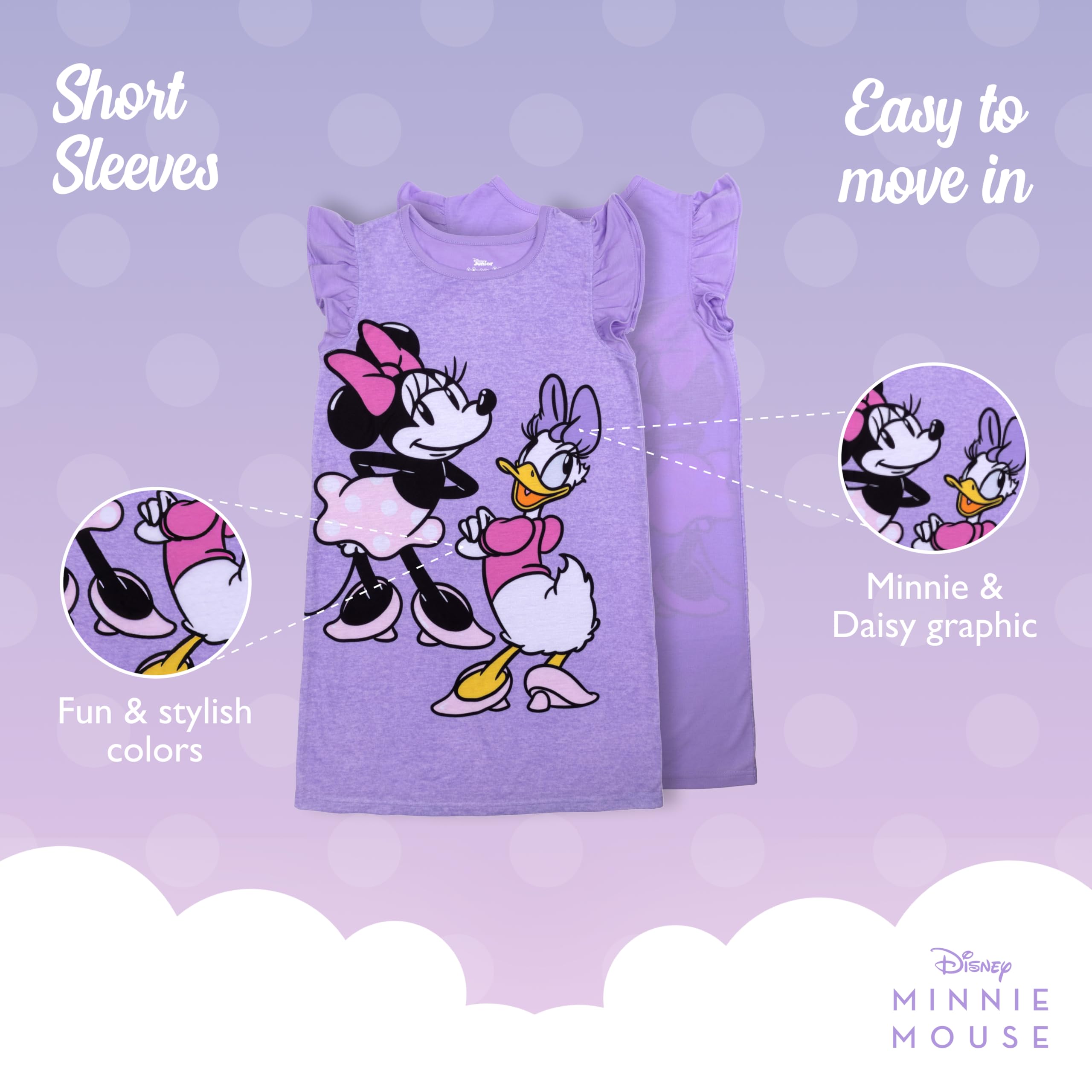 FUN MINNIE MOUSE FOR GIRLS: The soft 100% polyester of this girls’ nightgown will help your little one sleep comfortably. The pull-on design makes it quick and easy to pull on for bedtime or dress-up play.