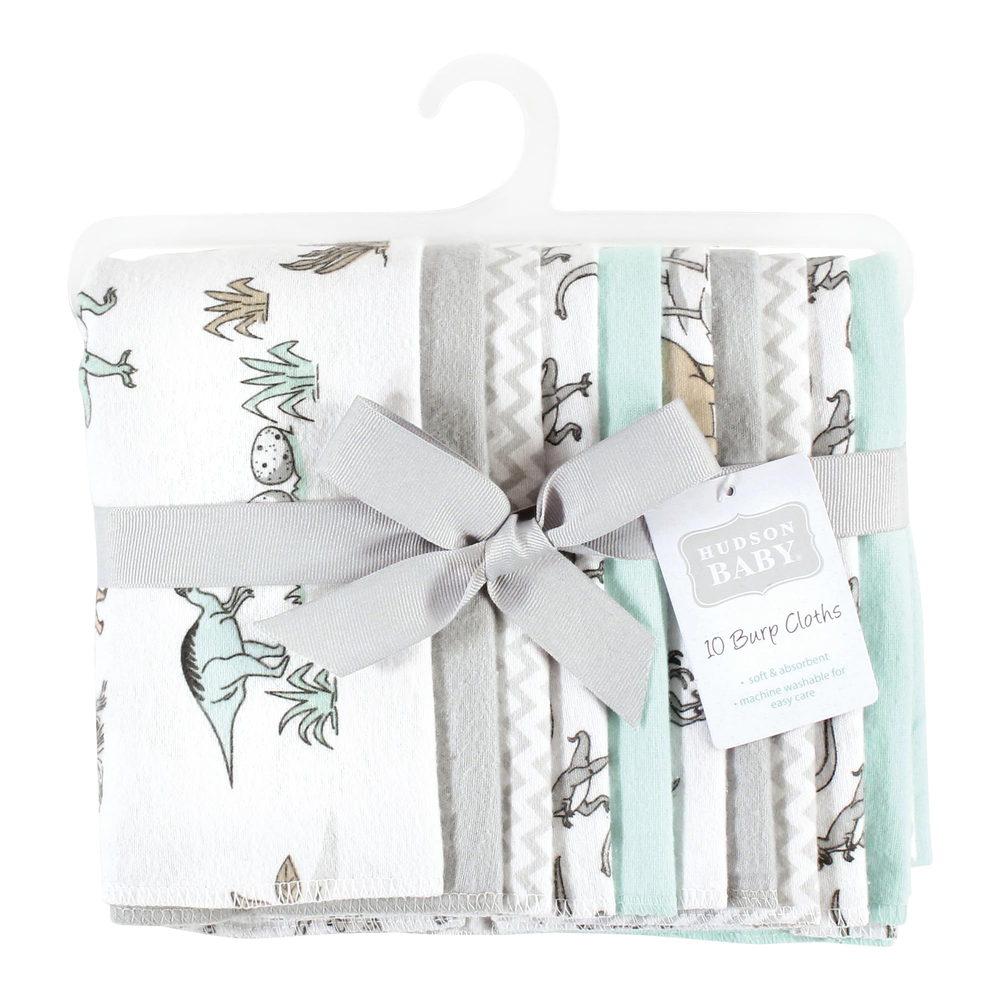 Hudson Baby flannel burp cloths feature multiple layers of fabric to help clean up the messes and spills that you are bound to encounter with your new baby. Our burp cloths are soft and gentle when used on baby's skin and help protect parent's clothes from drool and spills while feeding, burping, and snuggling baby. Our burp cloths will come in handy everyday, whether you are hanging out at home, traveling, or leaving your little one at daycare.