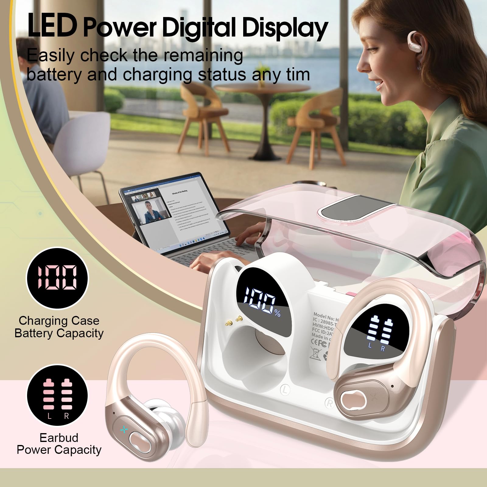 Leading Bluetooth 5.4 Technology and Easy Pairing: Features with the advanced Bluetooth 5.4 chip technology, Aptkdoe HD65 wireless headphones support HFP A2DP HSP AVRCP, which provides instant pairing and stable transmission without interruptions, with a stable connection distance of up to 33ft. The moment you open the case, the earbuds instantly and effortlessly pair with your previously connected device, sparing you from the hassle of manual pairing and long connection times.