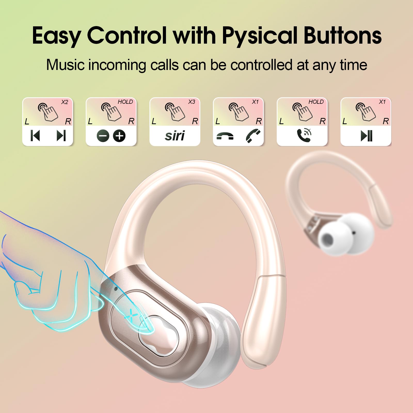 Ergonomic Sports Design and IPX7 Waterproof: The Wireless earbuds sport features ear hooks made of an innovative TPU (elastic) material that not only solves the problem of bluetooth earphones falling off when running, but is also comfortable to wear and anti-allergic. The earphones wireless bluetooth are equipped with nano-coated waterproof material, which can effectively prevent splash damage caused by sweat and raindrops, especially for jogging, gym, yoga and more sports.