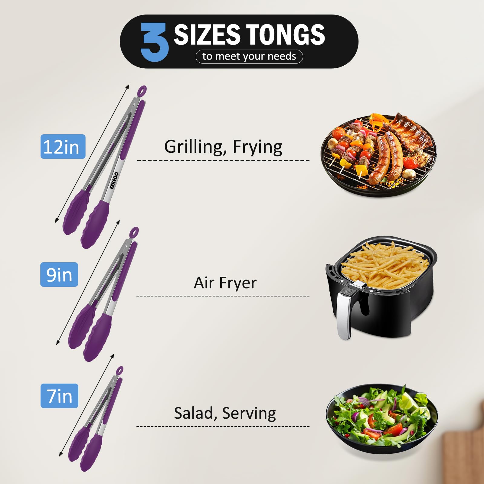 Essential Kitchen Tools: This tongs for cooking comes with 3 sizes, 7 inch, 9 inch and 12 inch. Perfect for your different kitchen tasks, indoor or outdoor use, grilling, flipping burgers/fish, cutting roast meat, pick up noodles and eggs, or used as BBQ turner or salad serving and much more.