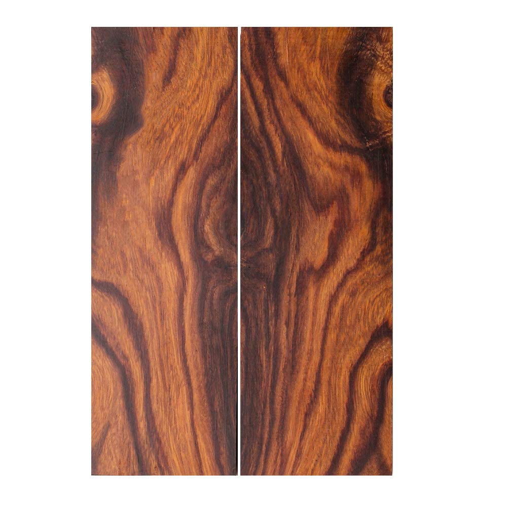 Ziricote is another high quality standard in knife handles. With unique "landscaping" black arcs, this figuring is only seen in a couple wood types.