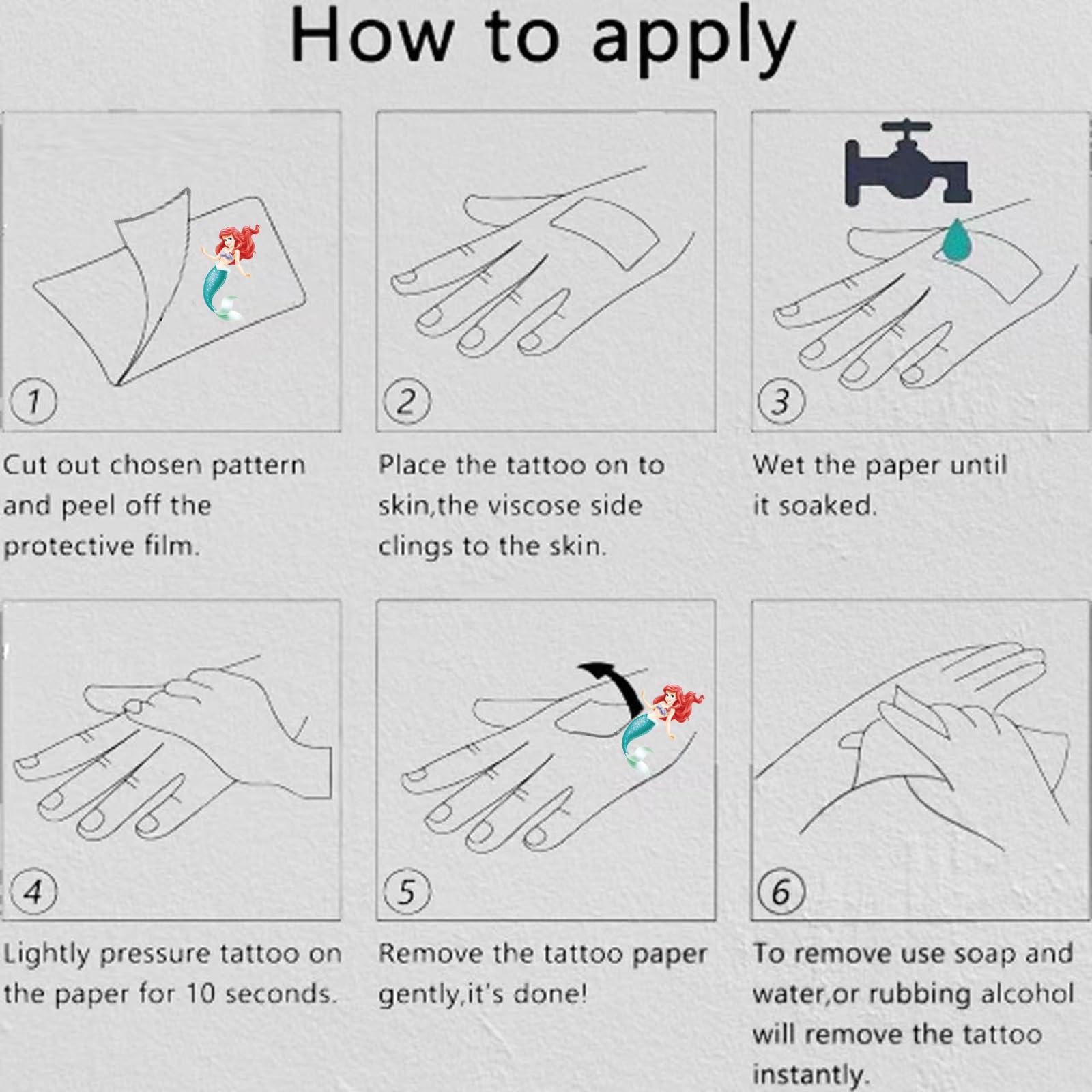 Our tiny fake tattoos for kids are made with FDA-compliant materials that are waterproof, non-toxic, and non-allergic. They can last for 3-5 days on your body, so you don't have to worry about bathing, swimming
