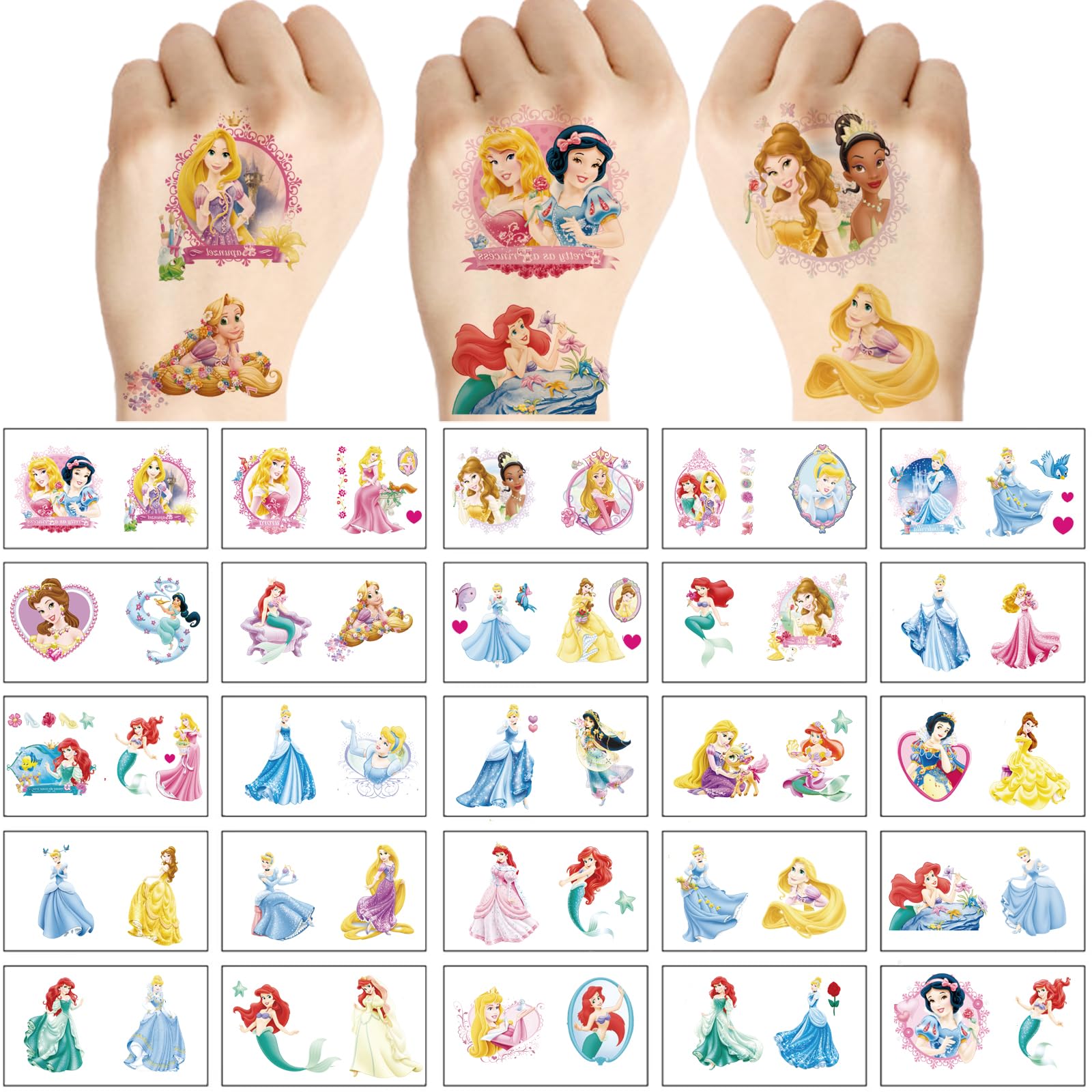 100 Sheets Disney Princess Temporary Tattoos for Kids, Brother Birthday Party Favors, Cute Cartoon Decoration Sticker Gifts for Girl Boys Home Activity Class Prizes Carnival Christmas Rewards Quantity: 100 pieces/set How to use: Cut out the desired pattern, wipe the back of the tattoo with a damp cloth or sponge for 30 seconds, then remove and you're done. Removal method: Soak the tattoo in baby oil, olive oil or alcohol and remove the tattoo after a few minutes. Scope of application: suitable for birthday party gifts and game-themed small gifts, or birthday parties, sleepovers, bachelorette parties, party decorations, etc.