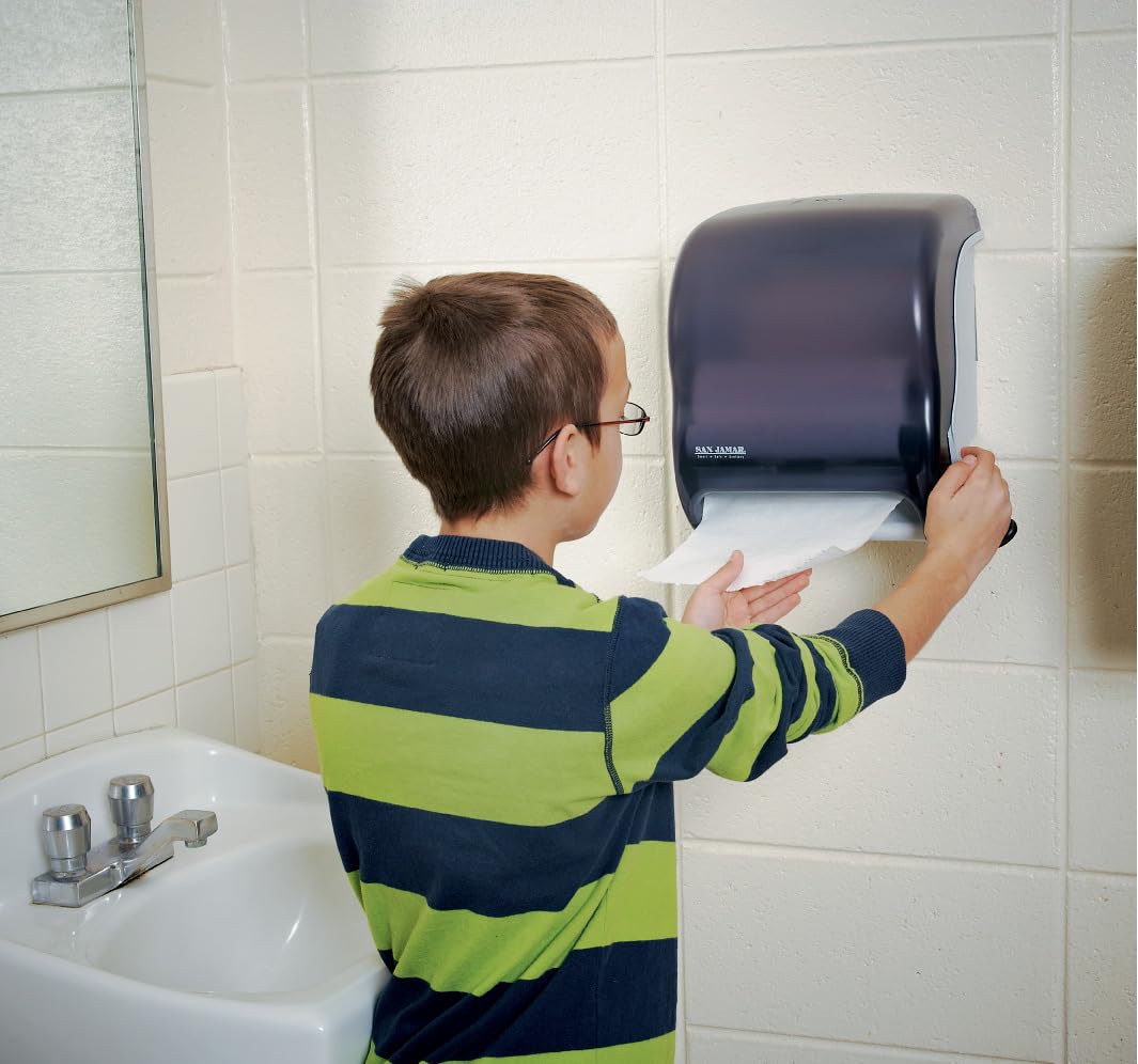 High-Capacity Dispensing: Store a standard 800’ 8” roll towel, reducing refill frequency and ensuring continuous availability in busy settings like restaurants and offices