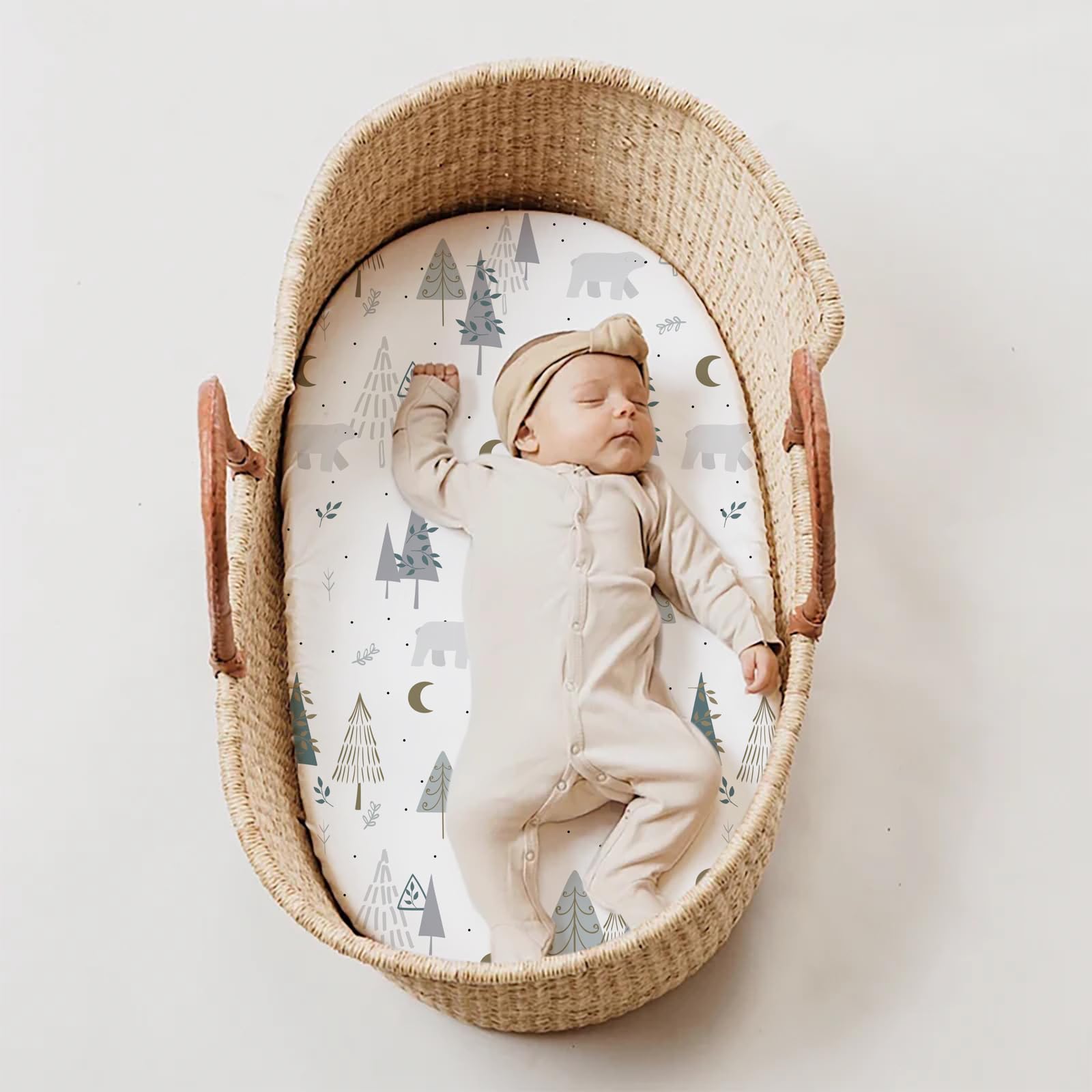 UNIVERSAL FIT BASSINET SHEETS FOR ALL CRADLE MATTRESSES:Our bassinet sheets are designed to fit all bassinet mattress pads, including oval, round, rectangle, and hourglass shapes. Whether you’re using a bedside sleeper, Moses basket, or standard bassinet, these bassinet sheets feature stretchy elastic edges for a snug, secure fit that won’t slip or bunch.