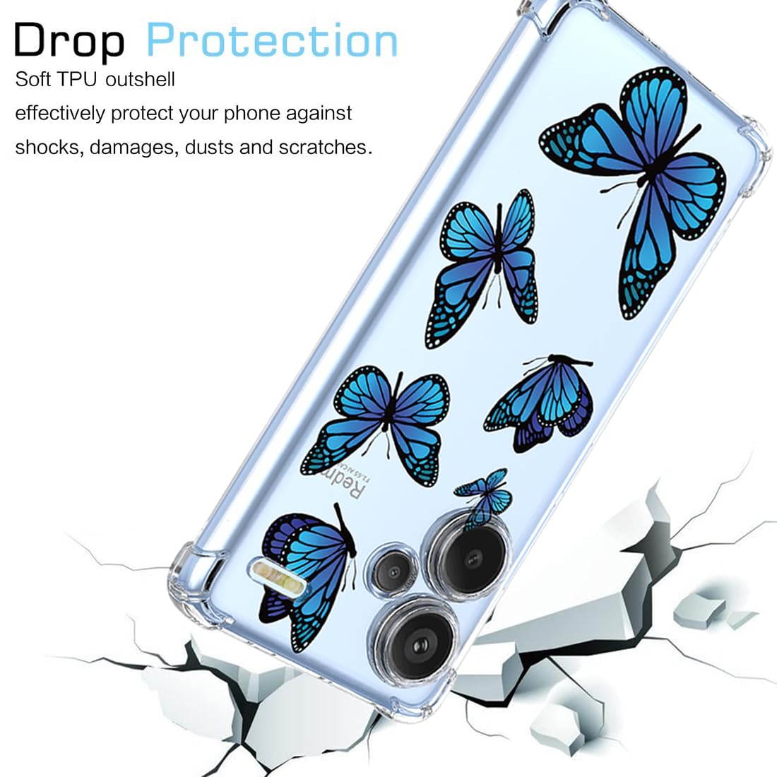 Compatibility: Compatible with Xiaomi Redmi Note 13 Pro+/Xiaomi Redmi Note 13 Pro Plus 5G 6.67" 23090RA98C 23090RA98G 23090RA98I. Please choose the right phone case before you buy it or you can ask me question in "Have a question". High-Quality Materials: Clear Soft TPU Case with flowers floral Animal kitten Blue Butterfly pattern,makes your phone eye-catching,elegant and noble. Upgraded Camera Lens Protection: he case itself with raise lens protection,reinforce corners Shockproof Protection can efficiently protect your phone from damage when it falls. Clear Back Design: clear back design show the original color of your phone. Seamless fit: Lightweight design ensures that your phone remains slim and easy to carry around. Package Content: 1 * Cover Cases for Xiaomi Redmi Note 13 Pro+