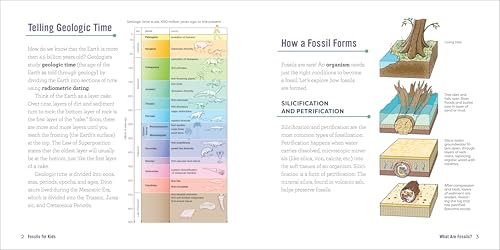 Uncover the ancient past―a guide to fantastic fossils for kids ages 6 to 8 Set off on an amazing adventure into the prehistoric past when dinosaurs roamed the Earth. Fossils for Kids is filled with fascinating photographs and captivating facts that will teach junior fossil hunters how fossils form, where they are found, and tips on how to identify them. Start by learning more about some of your favorite dinosaurs―from Velociraptor to Tyrannosaurus rex―and where you can see the coolest dinosaur skeletons. Then discover the creatures that predate even the dinosaurs! You'll meet famous birds, like the Archaeopteryx, explore tiny invertebrate trilobites, and learn which ancient plant is the source of a delicious drink―root beer! Fossils for Kids includes: Beyond dinos―You won't just be learning about dinosaurs; this book covers mammals, other reptiles, and plant fossils. Greater knowledge―Use the fun sidebars to dive deeper into the fossil world and get more hands-on learning. Clear images―The colorful pictures allow you to easily identify fossils. It's time to unearth your scientific curiosity―there's no telling what you'll find using Fossils for Kids as your guide.