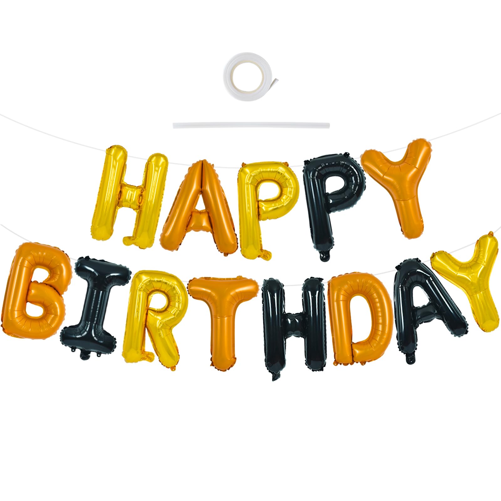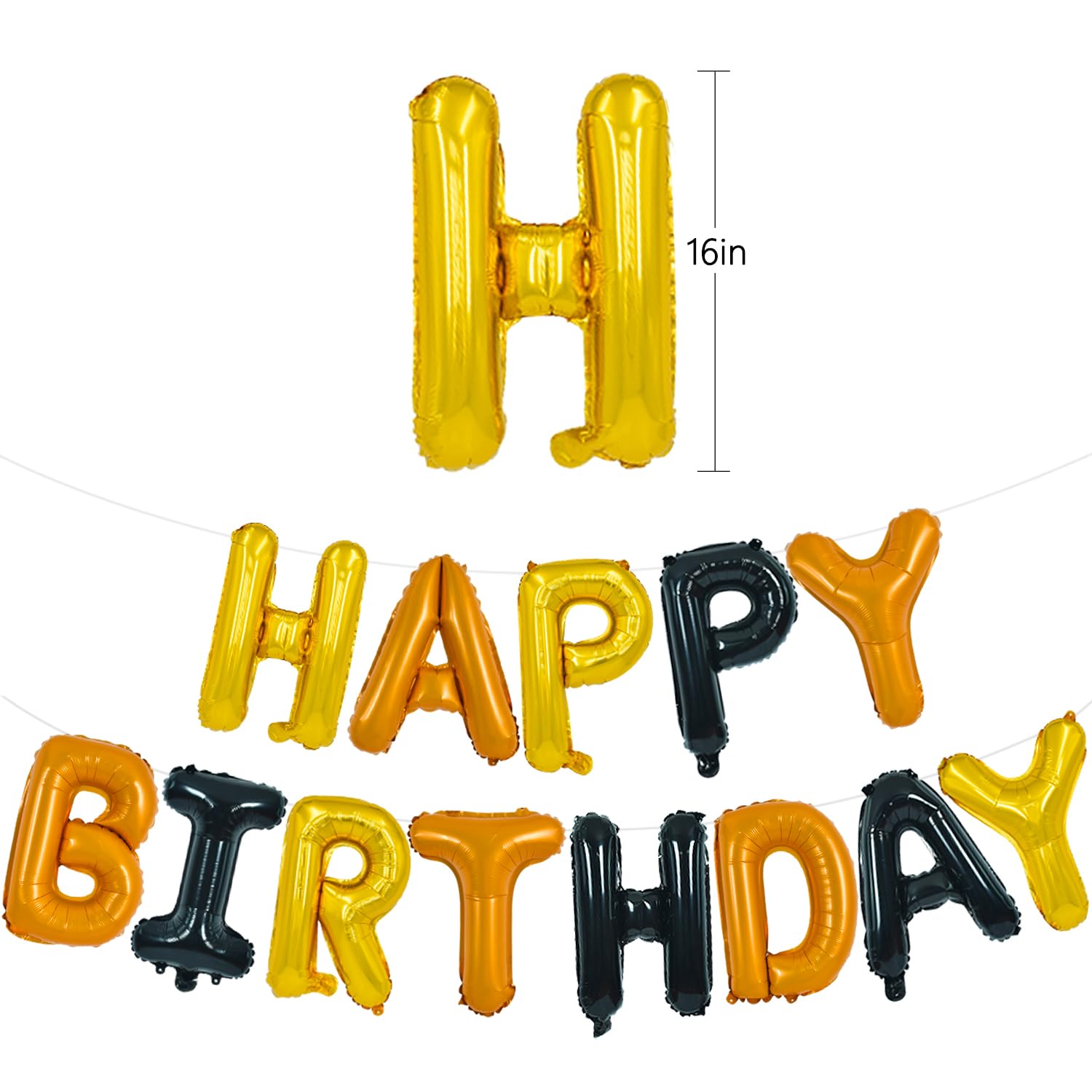 PACKACKAGE INCLUDES-- Totally 15 Pcs "Happy Birthday" letter balloons with 1pcs straw and 1 pcs ribbon. Each letter balloon measurement about 16 Inch.