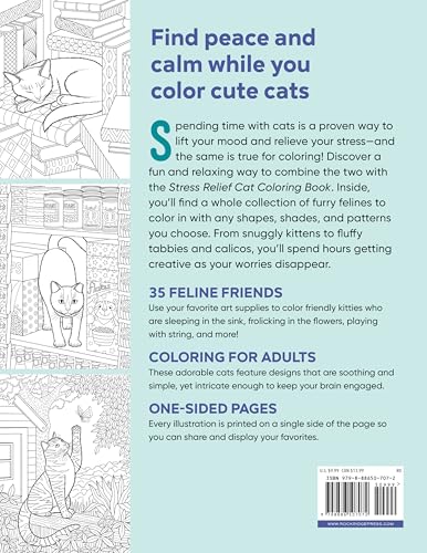 Find peace and calm while you color cute cats Spending time with cats is a proven way to lift your mood and relieve your stress―and the same is true for coloring! Discover a fun and soothing way to combine the two with the Stress Relief Cat Coloring Book. Inside, you'll find a whole collection of realistic and relaxed felines to color―with any shapes, shades, and patterns you choose. From sleeping kittens to playful tabbies and calicos, you'll spend hours feeling calm and creative as your worries disappear. 35 feline designs―Use your favorite art supplies to color cats in their natural habitats―like curled up in a sink, playing with string, and more! Coloring for adults―These detailed cat designs are restful, but intricate enough to keep your brain and hands engaged. One-sided pages―Every illustration is printed on a single side of the page so you can share and display your favorites. Grab this cat coloring book today and let your stress melt away!