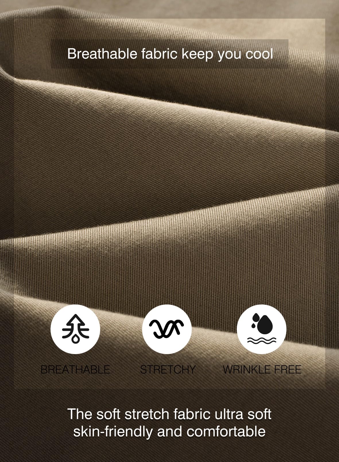 Twill elastic and comfortable Breathable material: 94%Cotton, 6%Elastane, more breathable and softer, twill casual pants made of highly elastic materials, providing great flexibility and sports comfort in daily life.