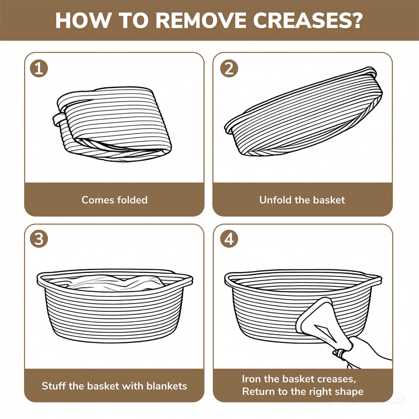Sturdiness and Durability: Our storage basket is made from high-quality cotton rope that will last a long time. Soft to touch, it's the perfect storage solution for families with babies or pets to avoid scratches on clothing or furniture