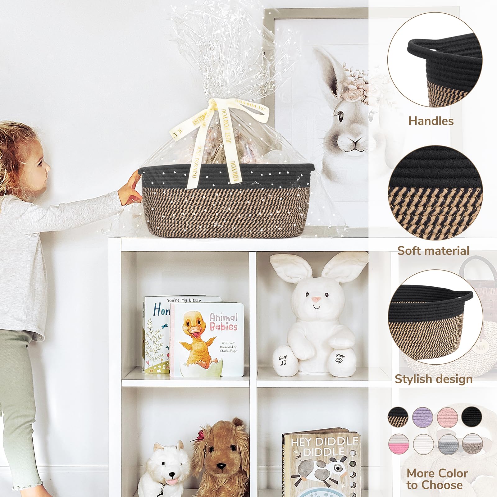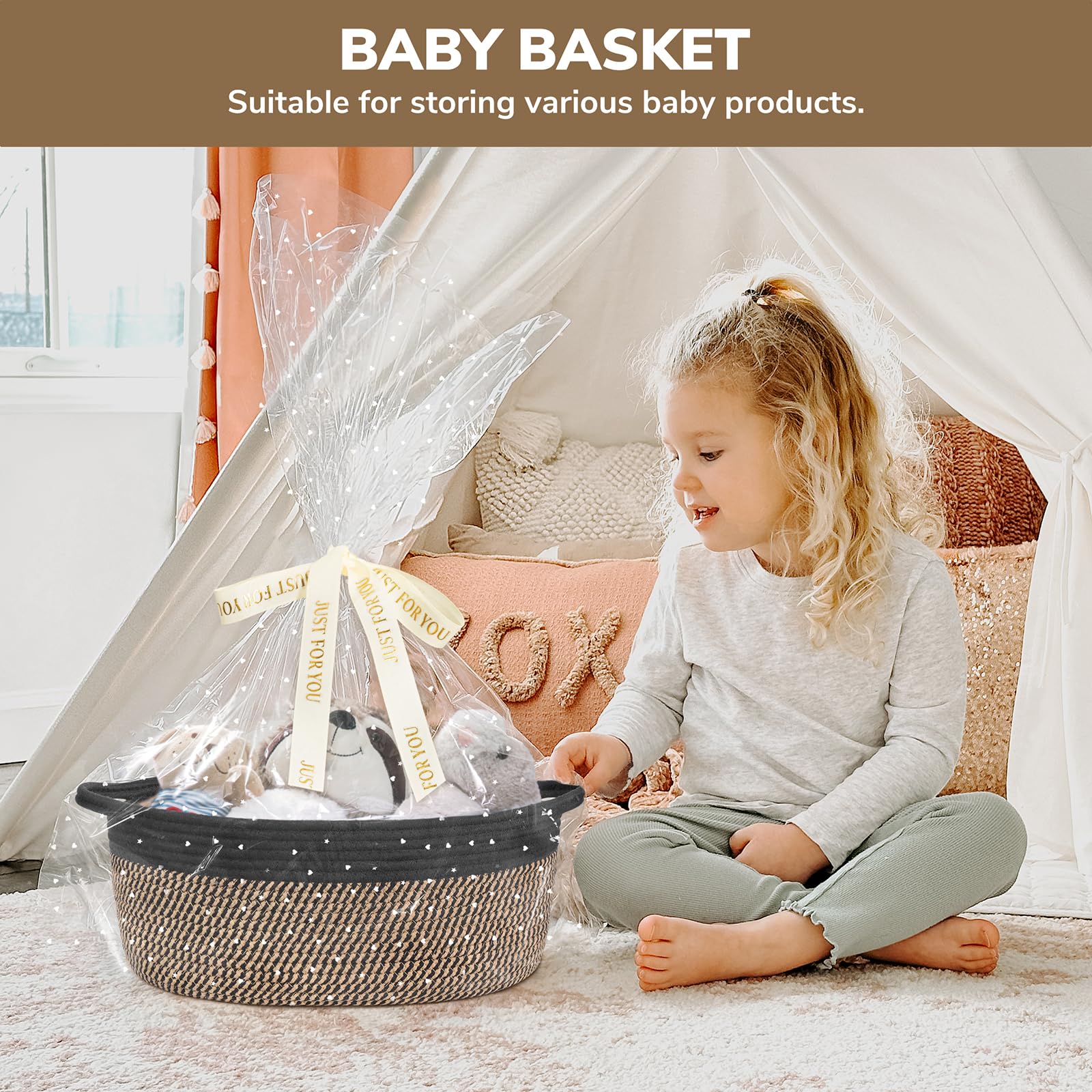 Ideal Size: Measuring at 13.6 x 10 x 6 inches, this decorative basket is perfect for baby shower gifts, storage of baby clothes, toiletries, and towels. It's the perfect size to keep all the essentials organized and within reach