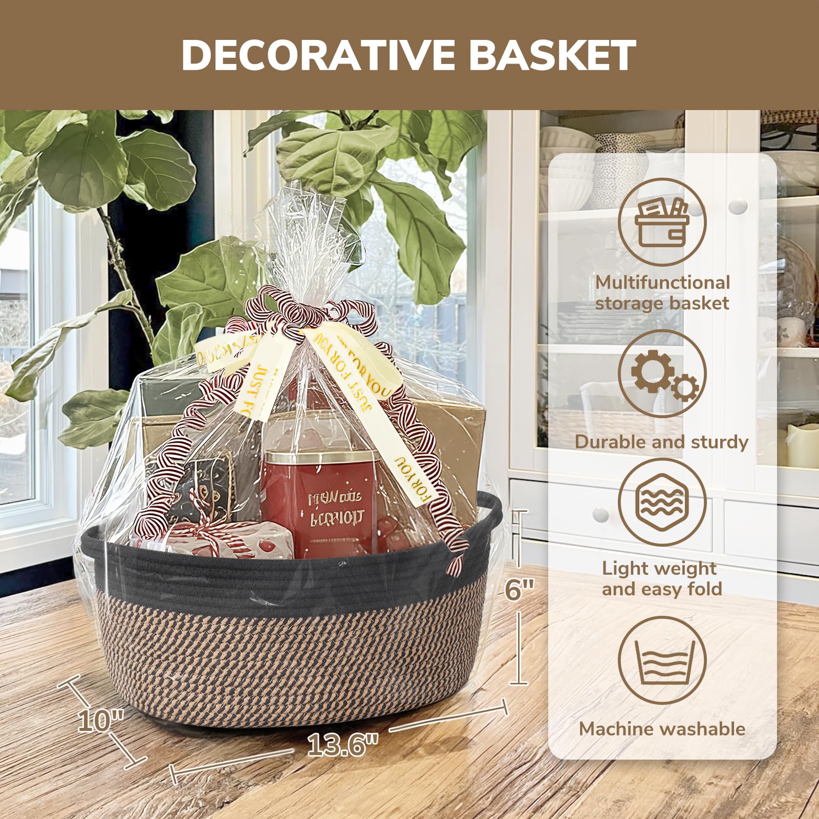 Attractive and Machine Washable: With a range of colors, it complements any room and can be placed on dining tables and coffee tables as decorative baskets. It's also machine washable, making it easy to maintain its clean and tidy appearance