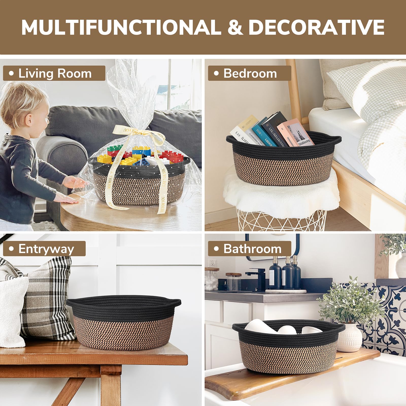 Multiple Uses: From organizing living rooms, entryways, bathrooms, bedrooms, and more, this basket can be used for various home decor and organization needs. Use it to store books, cosmetics, keys, towels, and other items to keep your home neat and tidy
