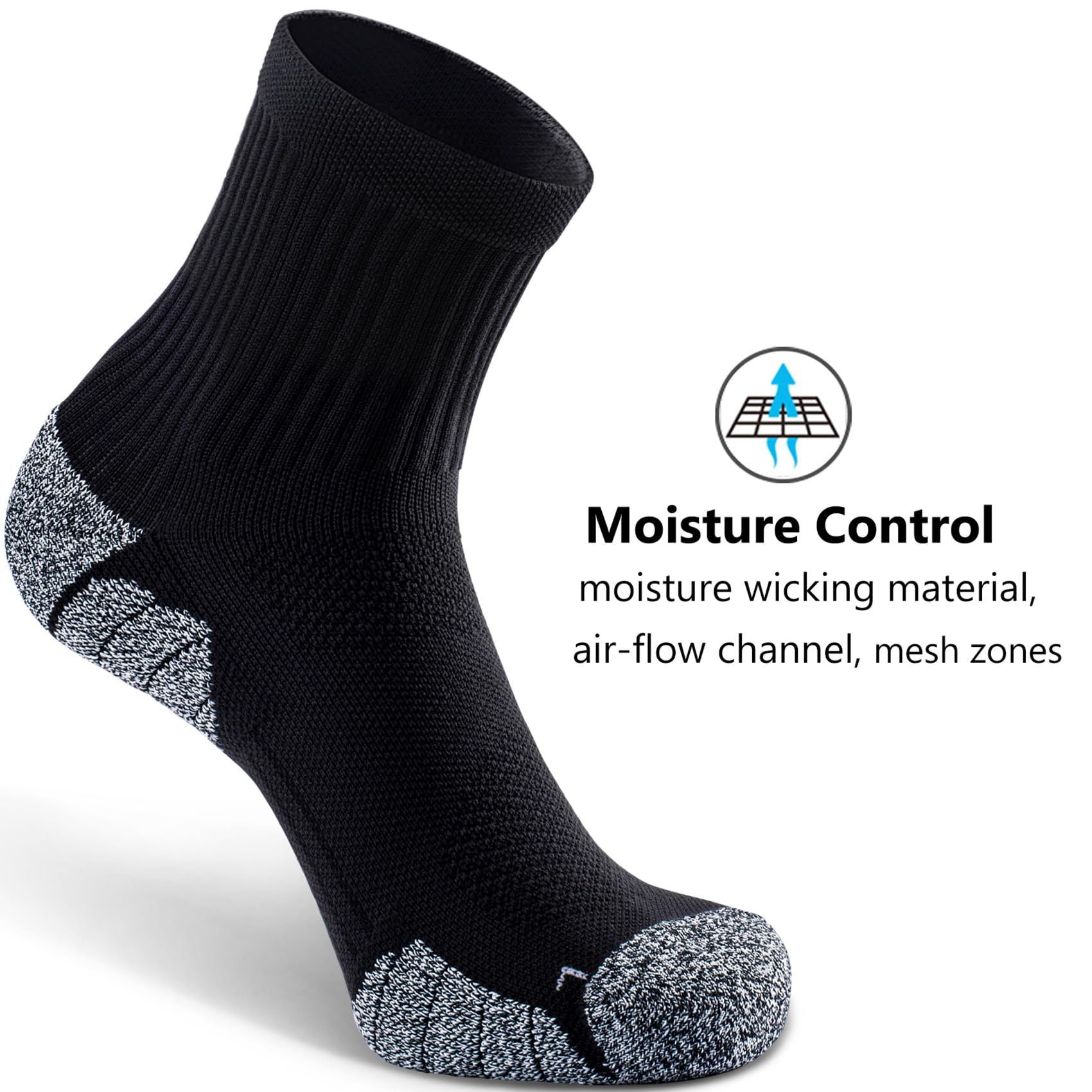 VERSATILE WEAR: Quarter socks pair perfectly with sneakers and boots; High-performance for running, basketball, hiking, golf, tennis, cycling, gym workout, long hours sitting or standing