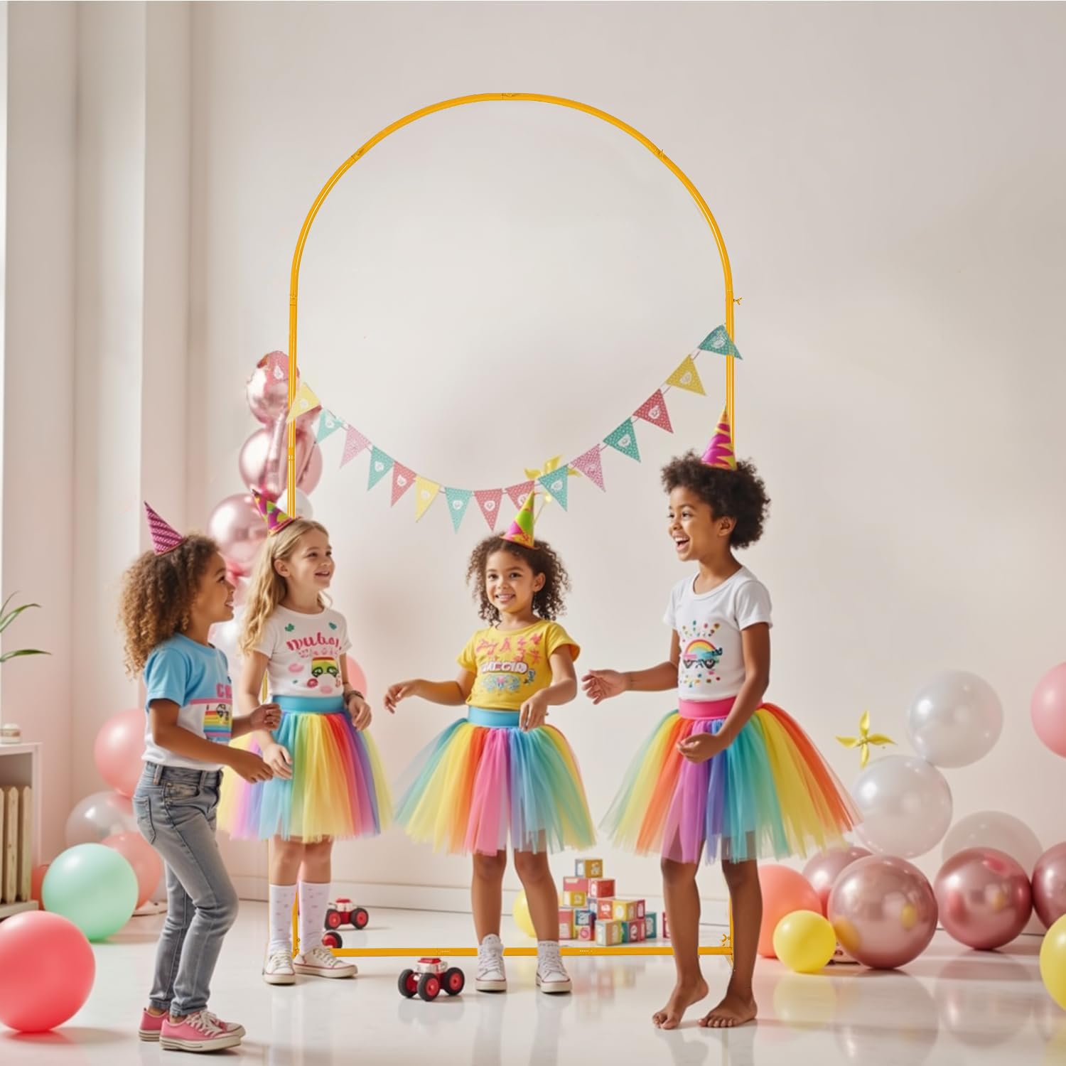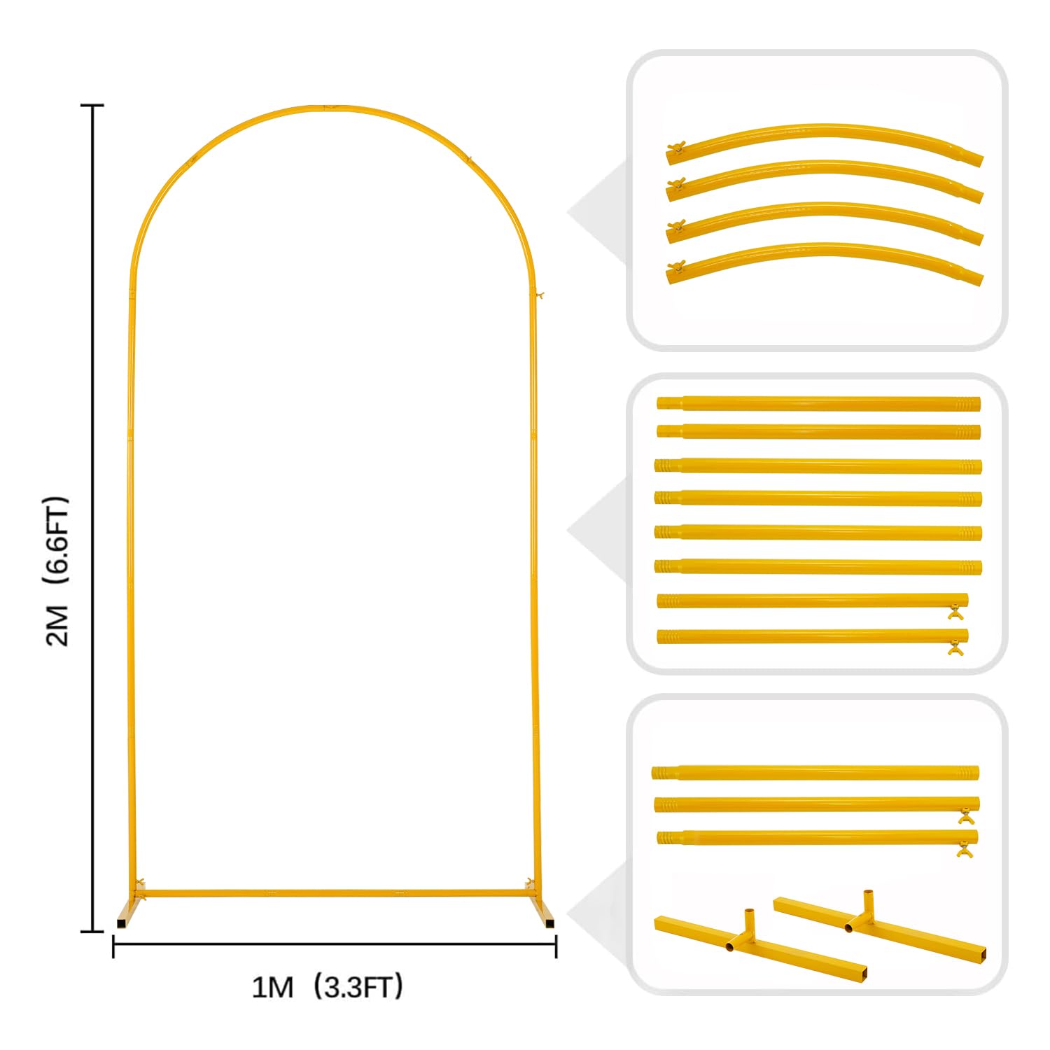 [6.6FT Wedding Arch Backdrop Stand]---The metal arch backdrop stand measures 6.6ft High x 3.3ft Wide. The color is gold with a bright yellow undertone. (Note: Color may vary slightly due to different monitor settings.)