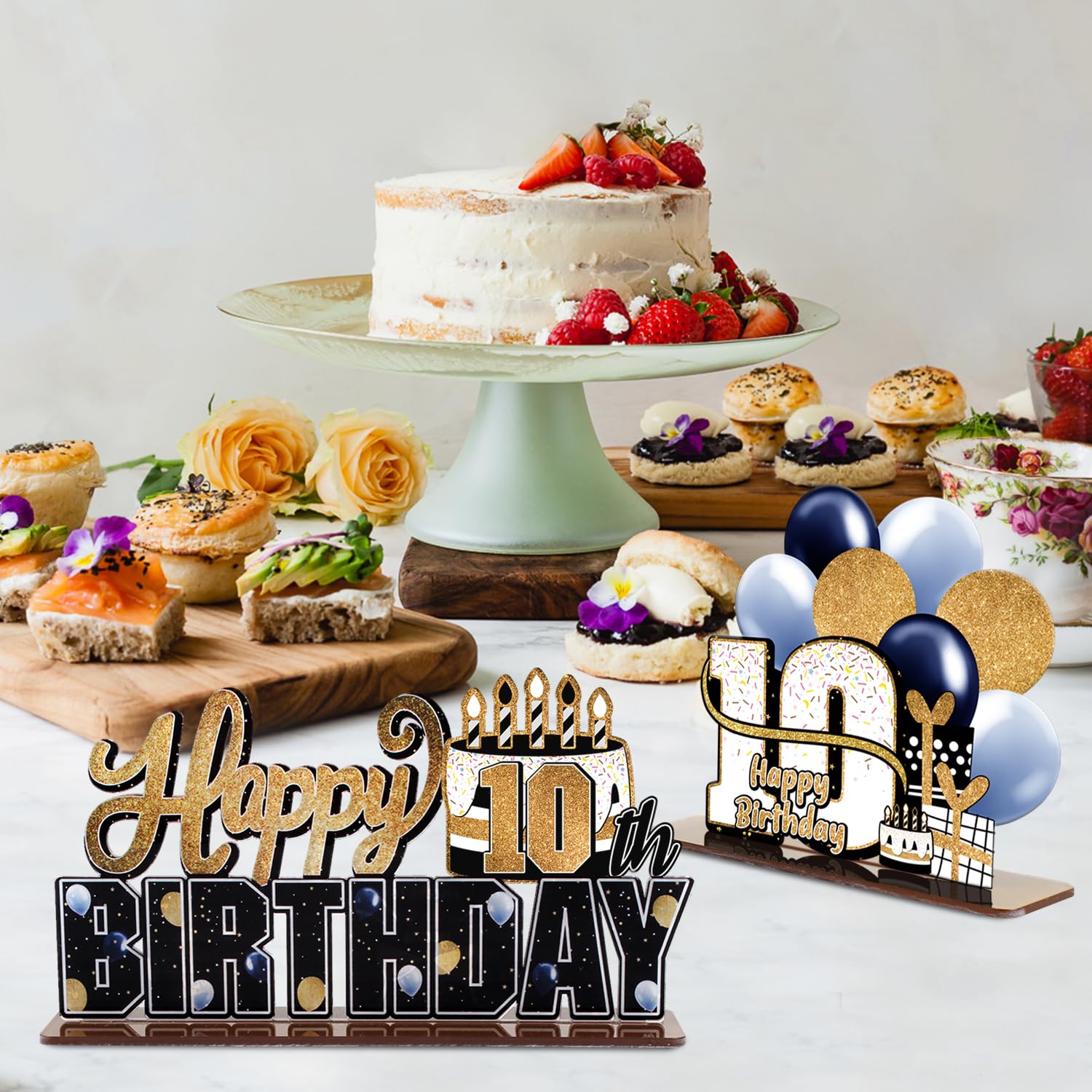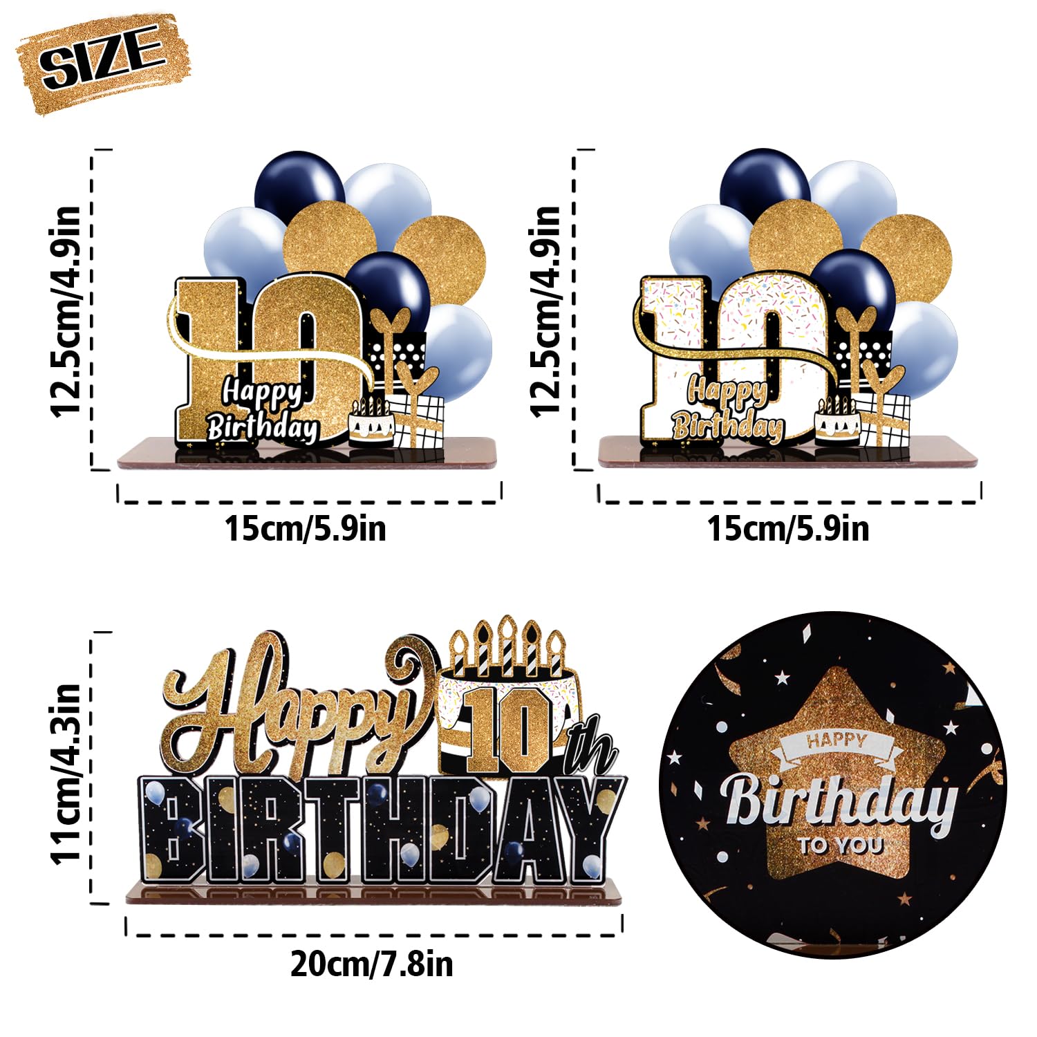 [WHAT YOU GET] Comes with 3pcs "10th Birthday" gold acrylic table topper ,made of thick acrylic and great details.Take pictures will very pretty !