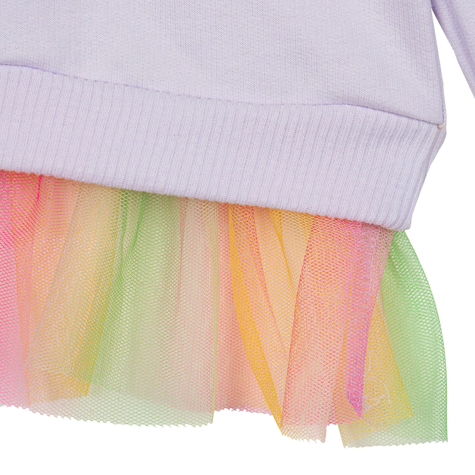 All over print design; Rainbow mesh ruffle peplum top; Pull on closure; Ribbed sleeve cuffs and waist for a better fit; Elastic waist for comfortable stretch and a better fit; Awesome digital print artwork