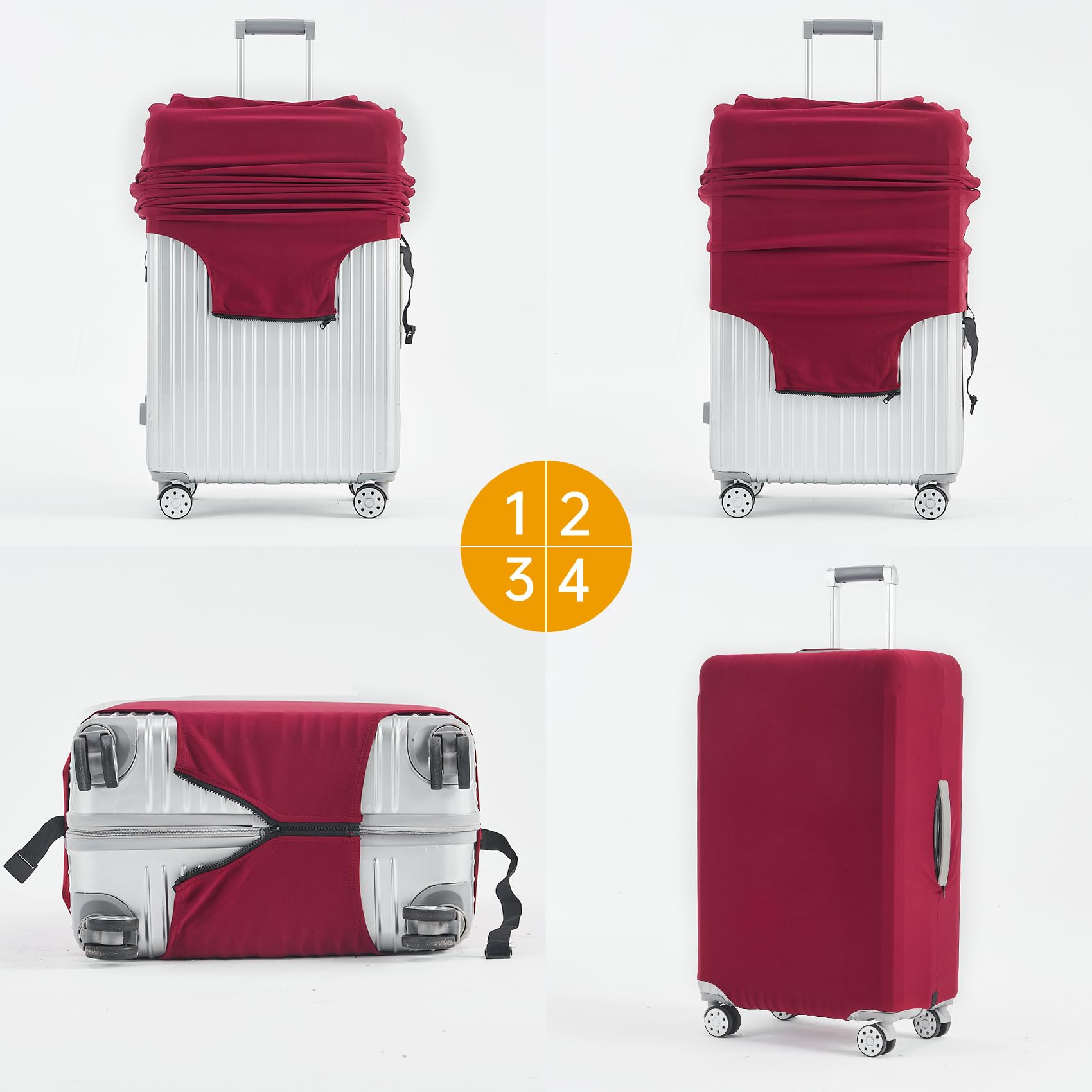 Suitcase cover material: Our cover is made of 300 grams elastic materials, 8% spandex and 92% polyester fibre, durable and washable