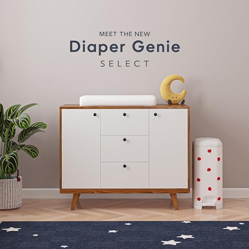 Introducing the new Diaper Genie Select Pail, a sleek addition to your nursery designed with both style and durability in mind. Crafted from durable stainless steel, the new Diaper Genie Select pail features a Push N Lock odor locking clamp that effectively helps to contain odors of messy diapers. For added convenience, the Select diaper disposal system includes a foot pedal, allowing for easy, one-handed operation. Our new metal pail can hold up to 40 newborn diapers and comes with multi-layer starter refill film, featuring our advanced Max Odor Lock technology. This starter refill can securely hold up to 165 newborn diapers. The Select Pail is also compatible with our Diaper Genie Jumbo refills made from a durable, multi-layer film with odor-locking barrier technology, ensuring effectiveness and long-lasting freshness.