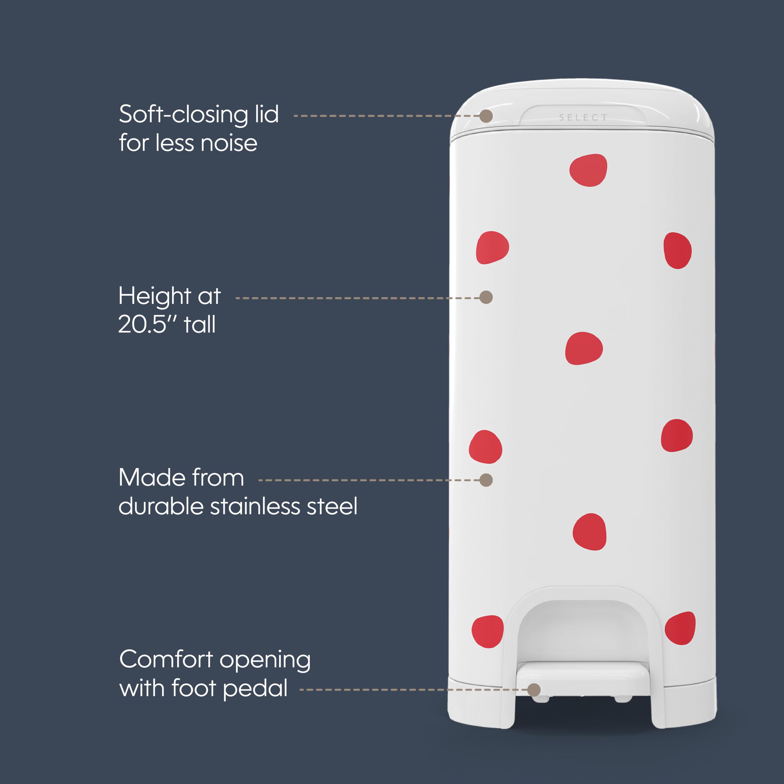 DURABLE & ULTIMATE CONVENIENCE β made of stainless steel and equipped with a foot pedal for easy one-handed operation.