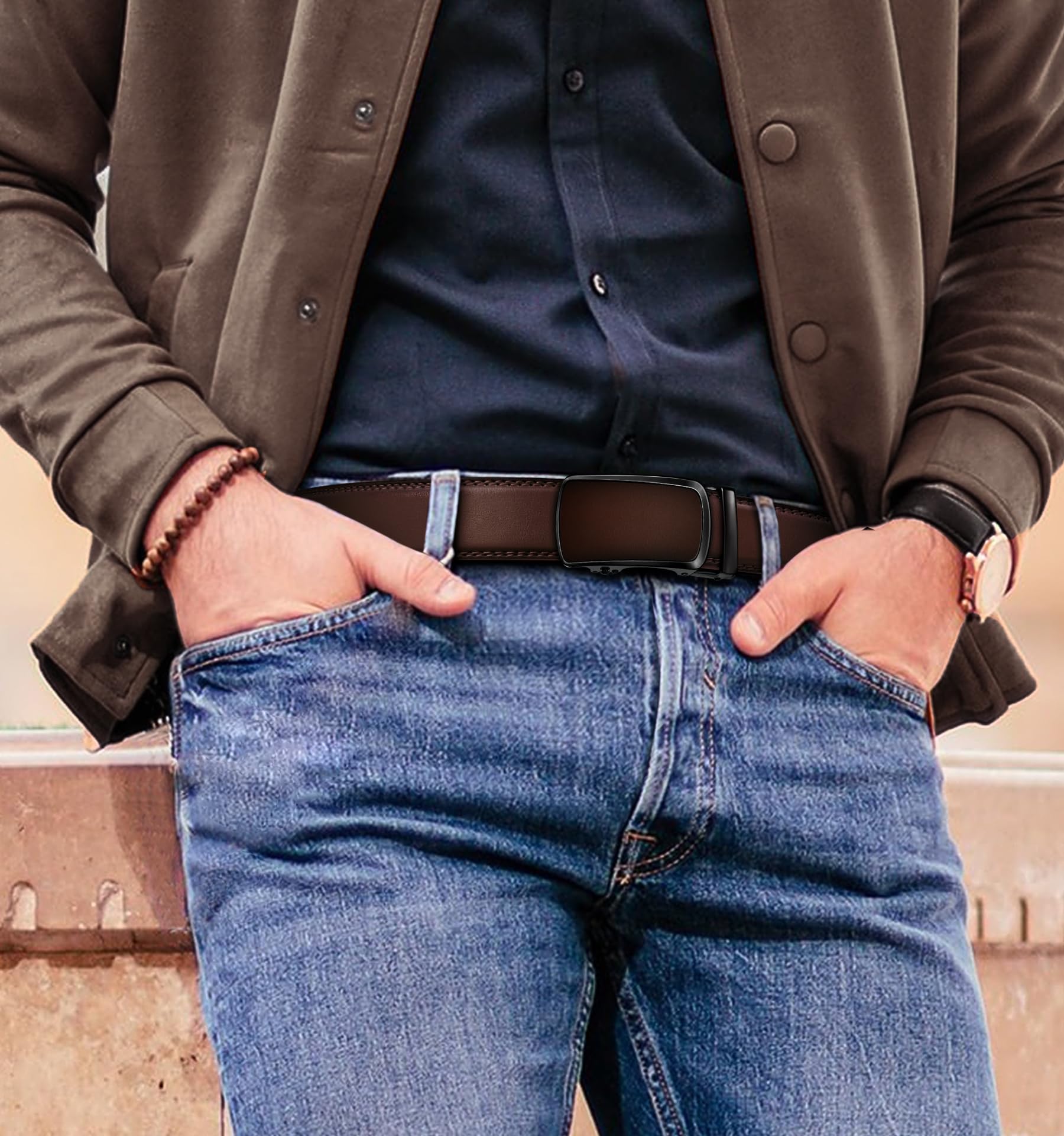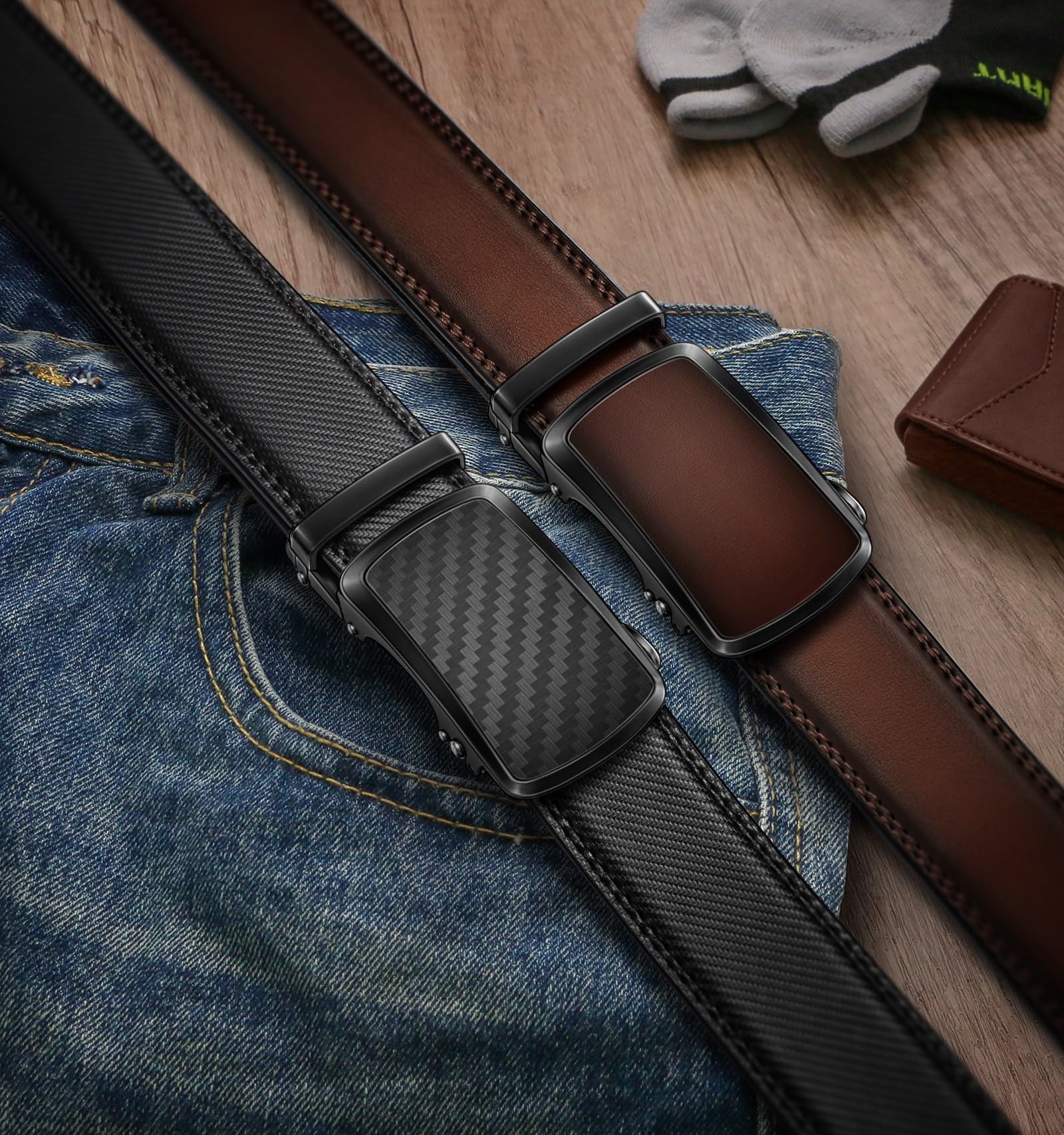 PRECIESE FIT--The Bulliant men's belt is installed an slide ratchet with 32 notches and each gapped at 1/4",with this belt,you can get an perfect fit any time for all-day comfort. Just say goodbye to the hassle of belts that are too tight or too loose;