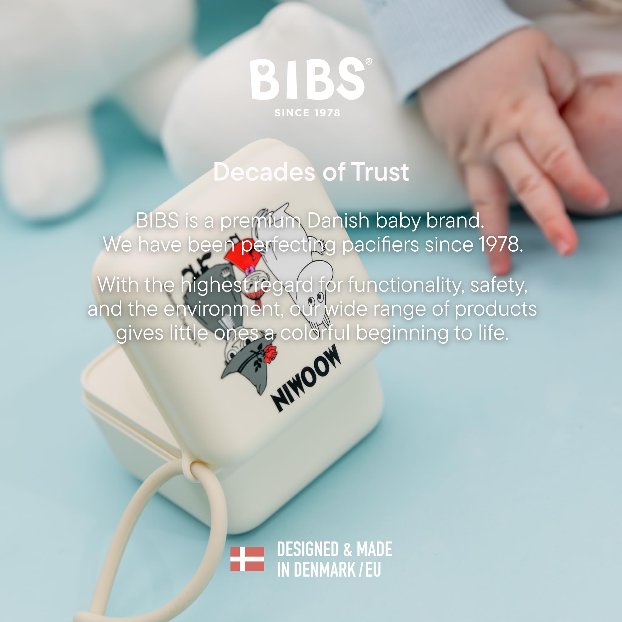 BIBS pacifier box is a multiple-functional product, that not only can be used for storing pacifiers when you are on the go but also as a sterilizer box for microwave sterilization. Featuring charming Moomin characters, this special edition brings storybook magic to everyday life.