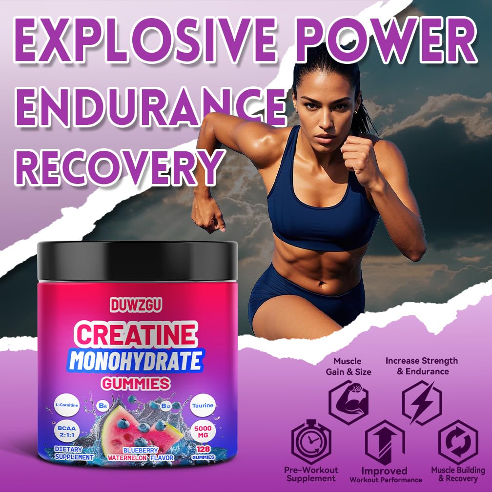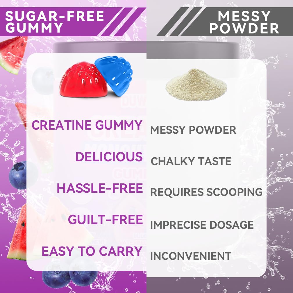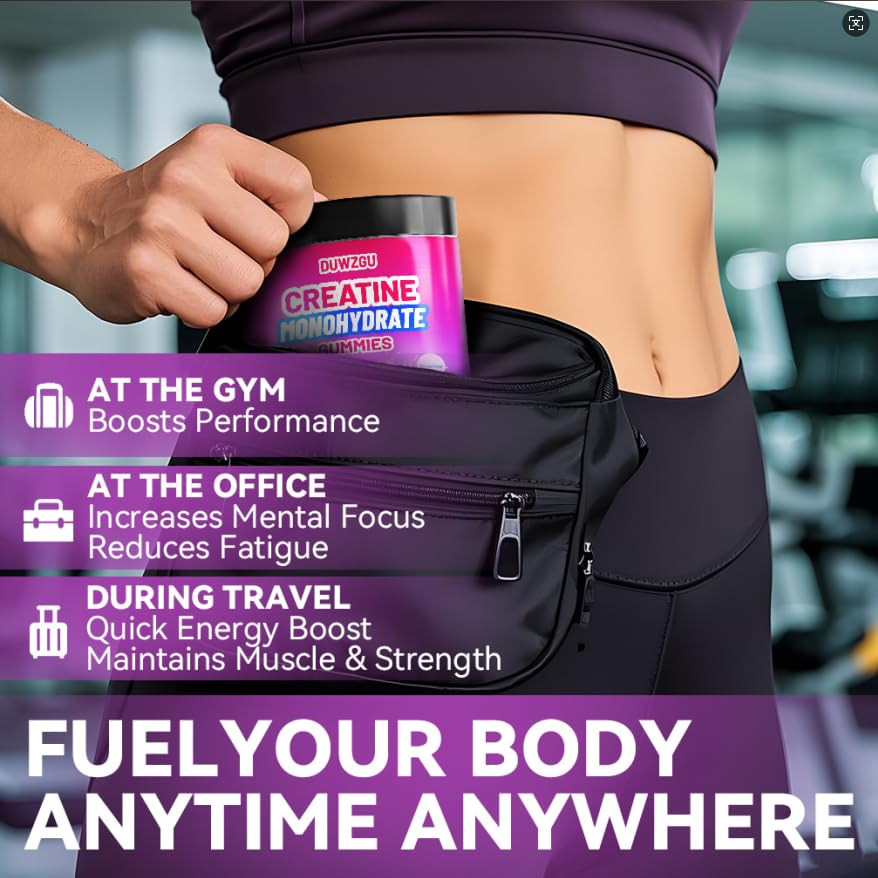 💪High-Potency Creatine Dose - Packed with 5000mg of micronized creatine monohydrate per serving to fuel muscle growth, strength, and workout performance, all in a delicious gummy form.
