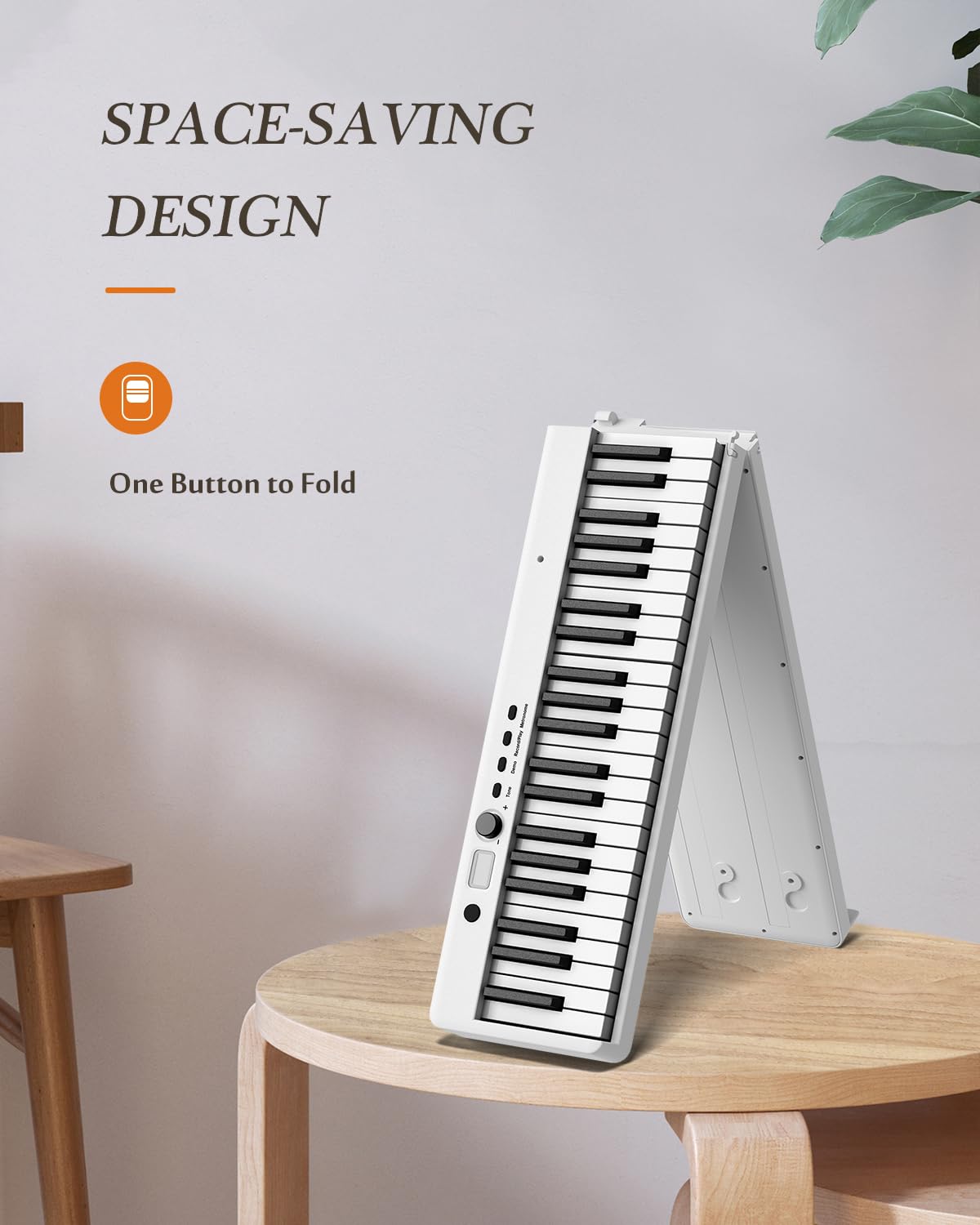 FOLDABLE/PORTABLE/COMPACT - TURE space saving, the folding piano keyboard makes it easy to transport and store in a compact space. You can take it with you wherever you go, whether you're traveling, moving, ect. Easy-to-transport weight and built-in high-capacity battery, can be played without plugging in, suitable for open venue performances