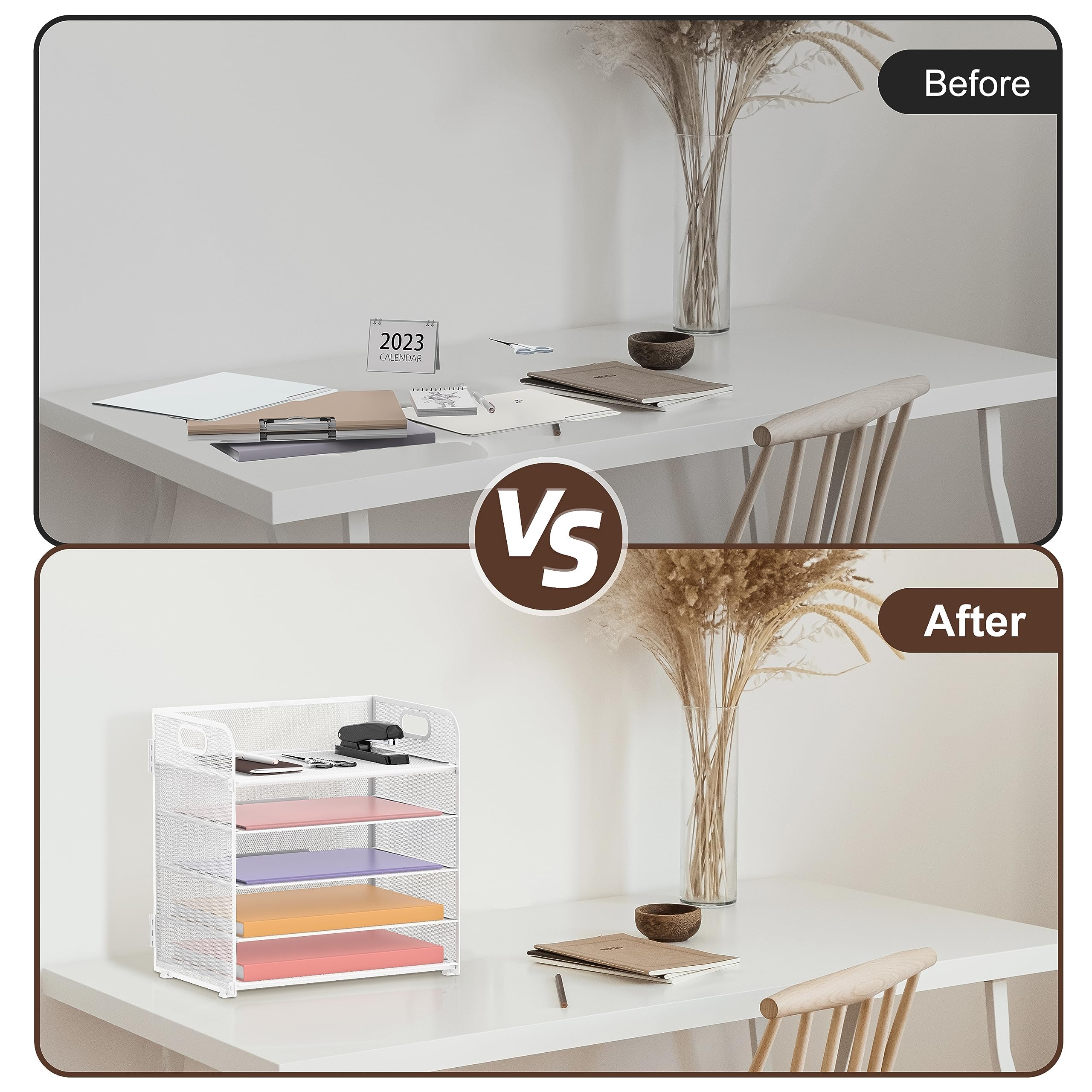 [Handle Design] The handle design makes the paper tray organizer easy to move. These white desk organizer are suitable for women, students, office clerks, teachers, and teens, offering both functionality and aesthetic pleasure.