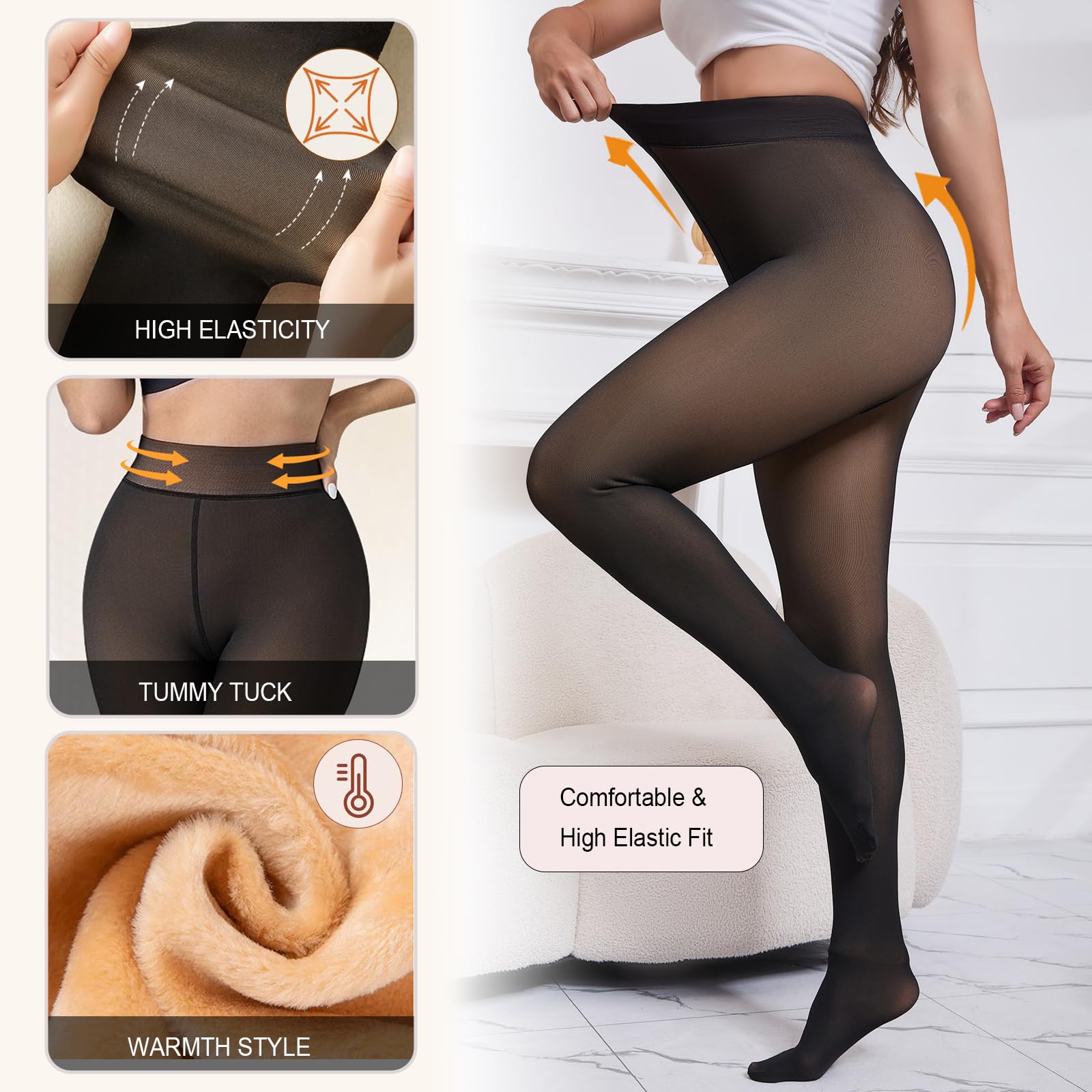 Fake Translucent, Versatile Pantyhose: Our pantyhose look like sheer stockings from the outside, but the warm fleece lining inside closely matches your skin color, creating a fashionable and natural look. Your winter wardrobe essential - Flattering tights that pair effortlessly with coats, skirts, or sweaters, keeping you elegantly warm all season.