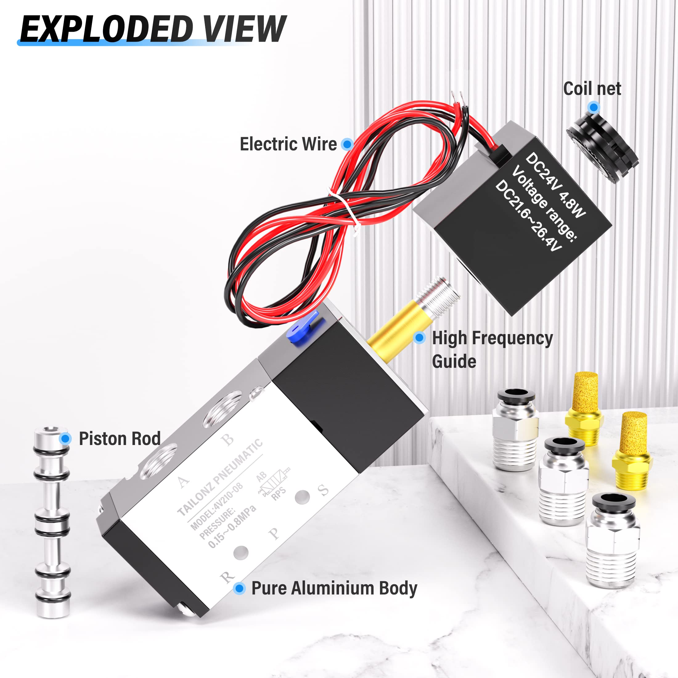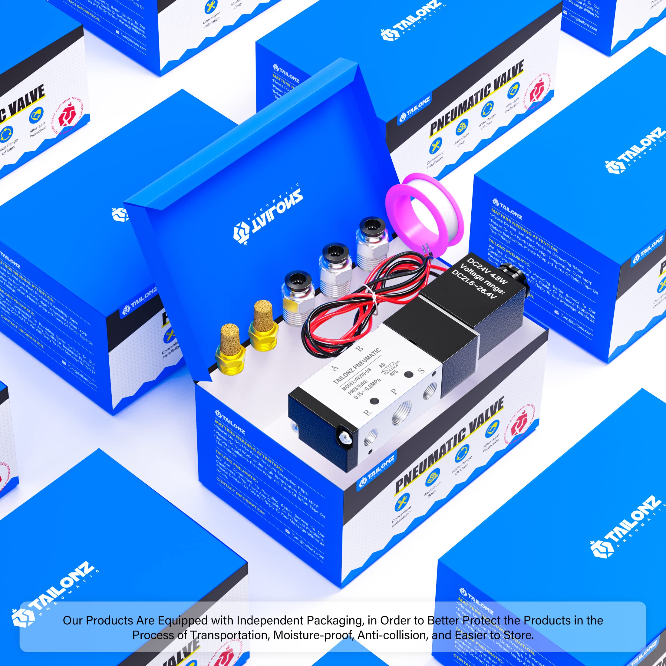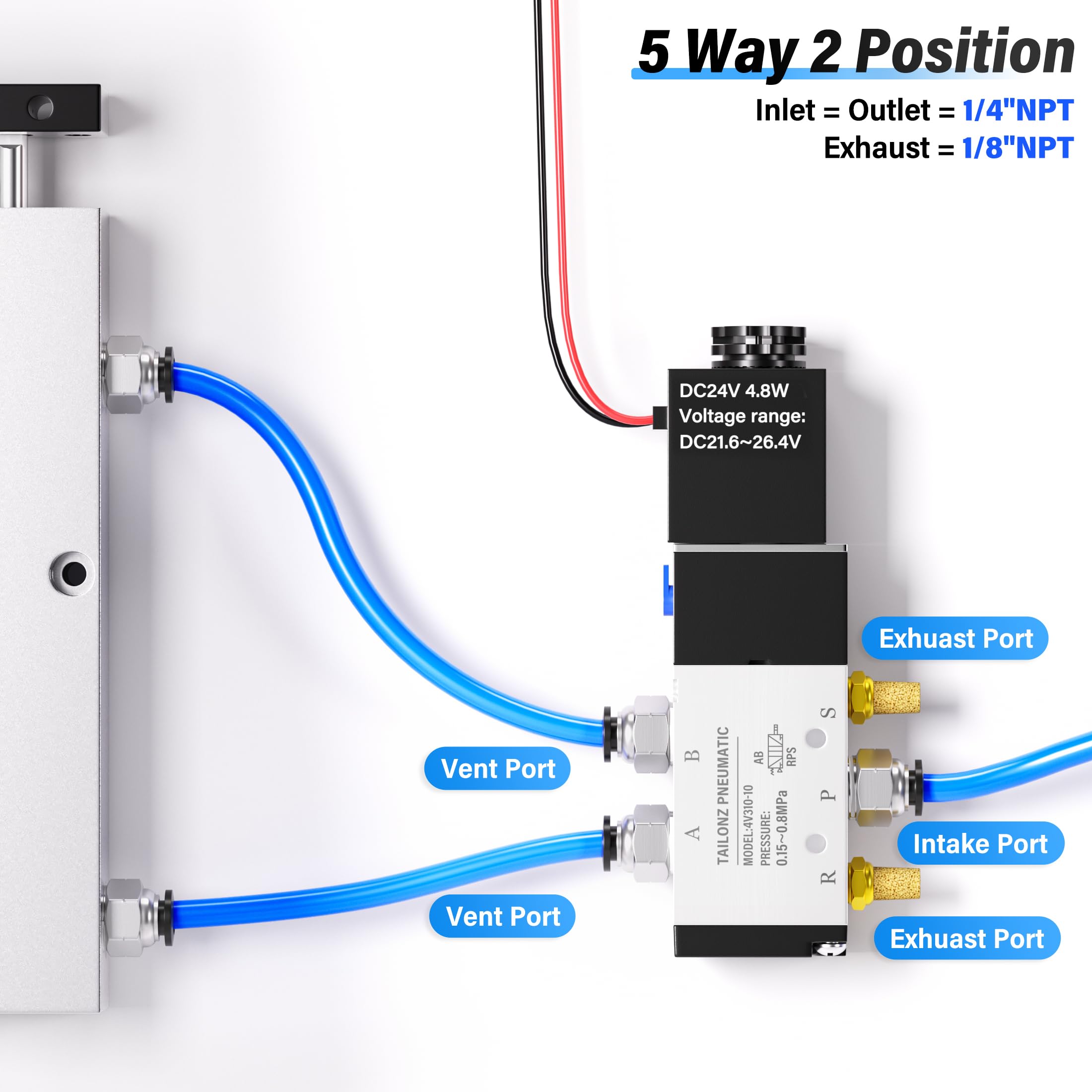 【Size】Outlet Port: 1/4 inch (about 0.6 cm) NPT; Inlet Port: 1/4 inch (about 0.6 cm) NPT; Exhaust port: 1/8 inch (about 0.6 cm) NPT; We provide pneumatic fittings for direct connection to 1/4 or 6mm air hose.