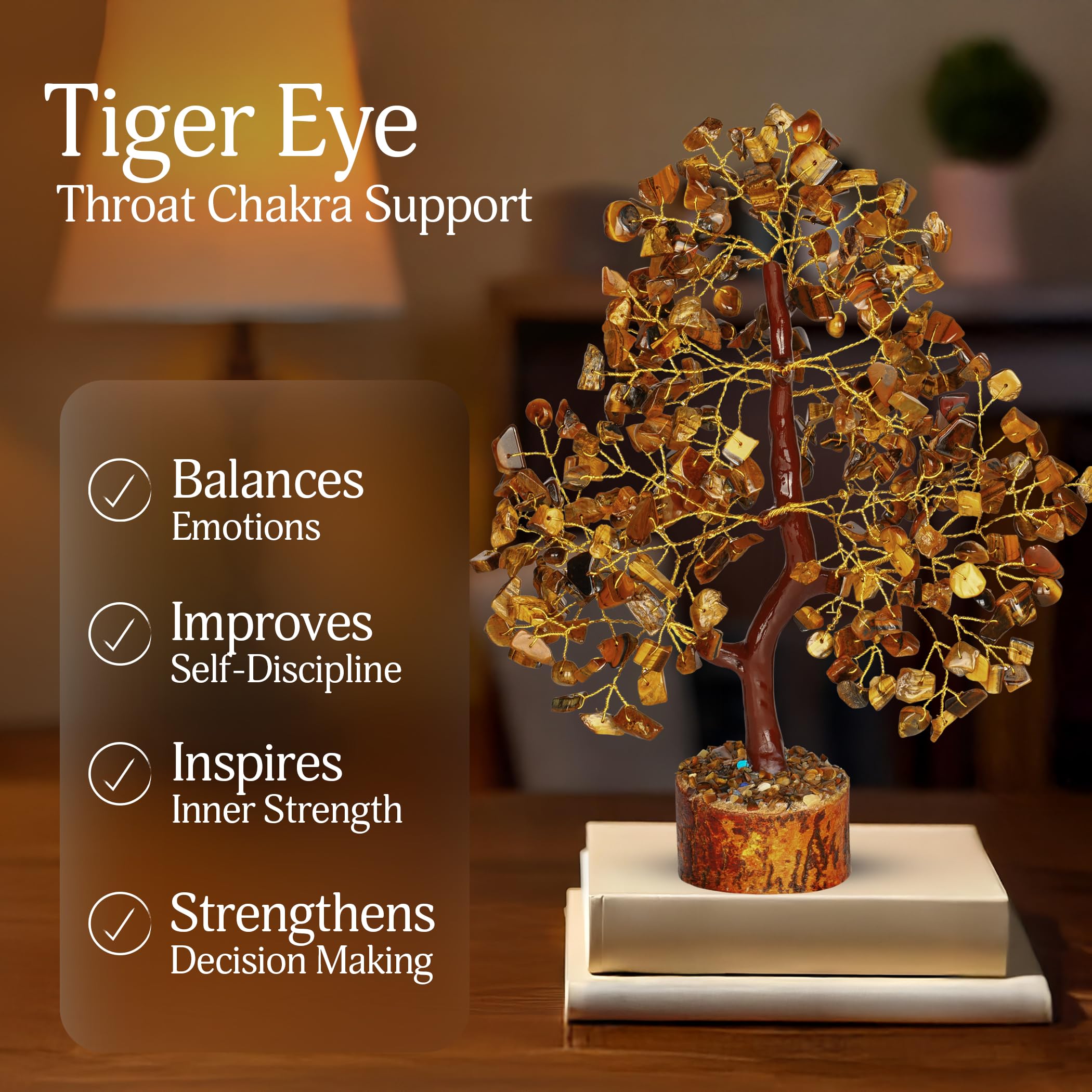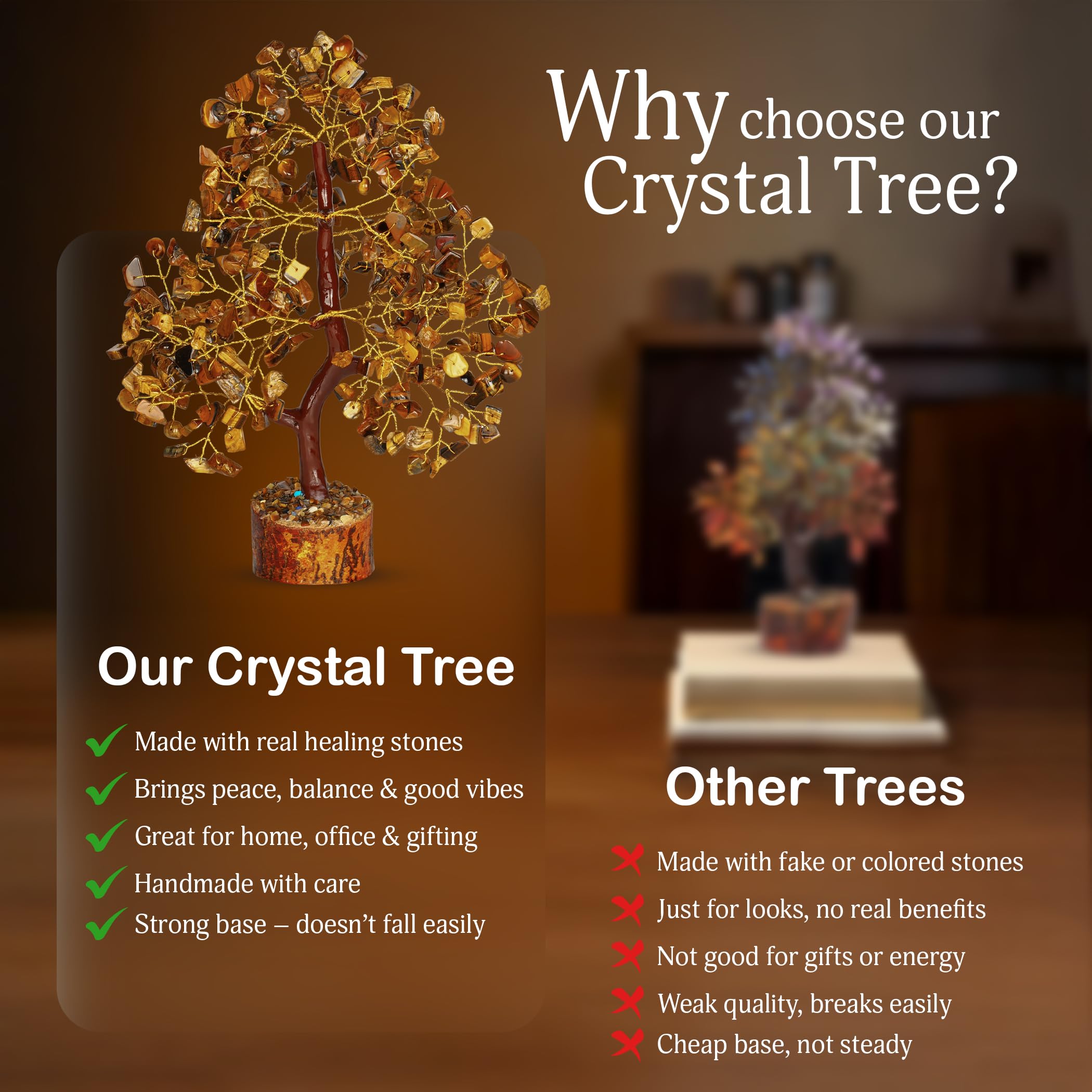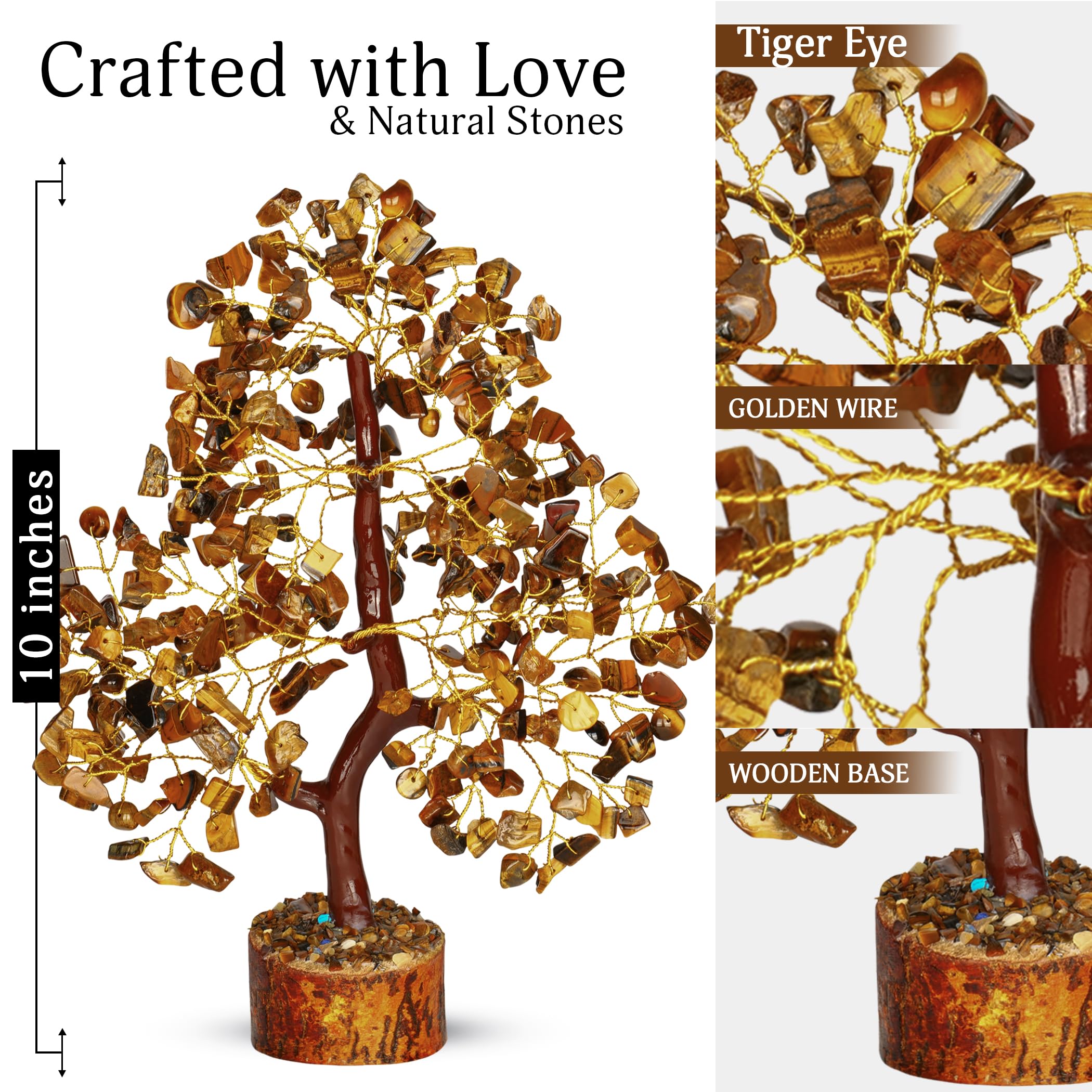 An Elegant Home Room Decor Item - Reiki tiger eye crystal on this beautiful divine tree is a unique sight catchy pleasing crystal. Making it a colorful and elegant decor item. You can use this feng shui buddhist figurine for room decor, home office decor, spiritual room decor, desk decorations, chakra wall decor, pretty home decor, center table decorations for living room, knick knacks home decor, crystals, and healing stones decor, buddhist decor, etc.