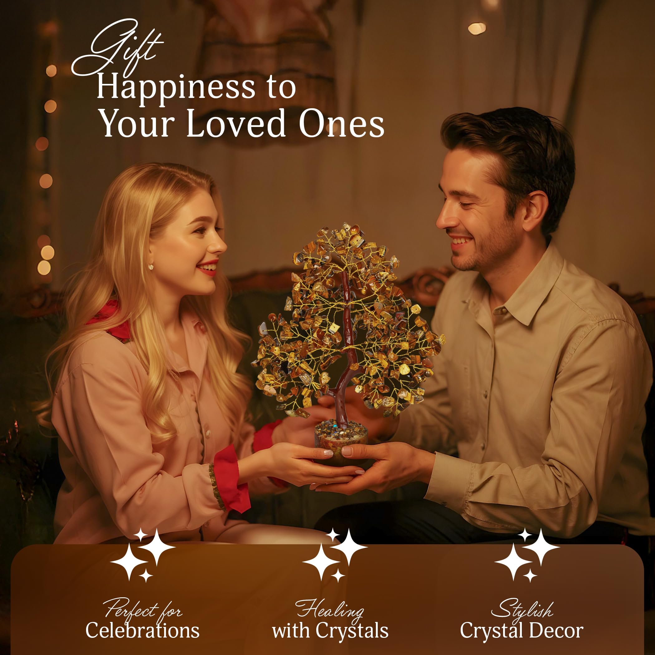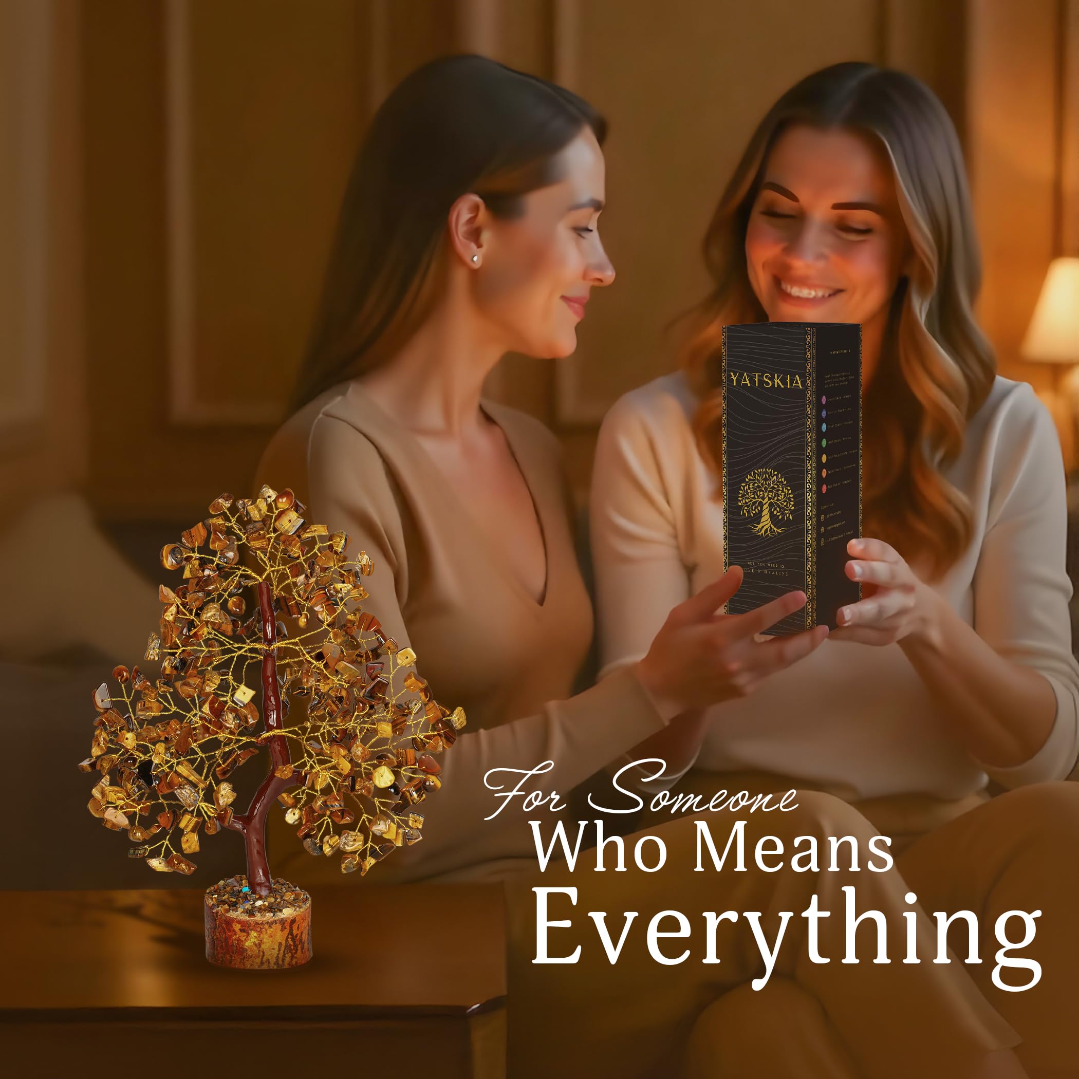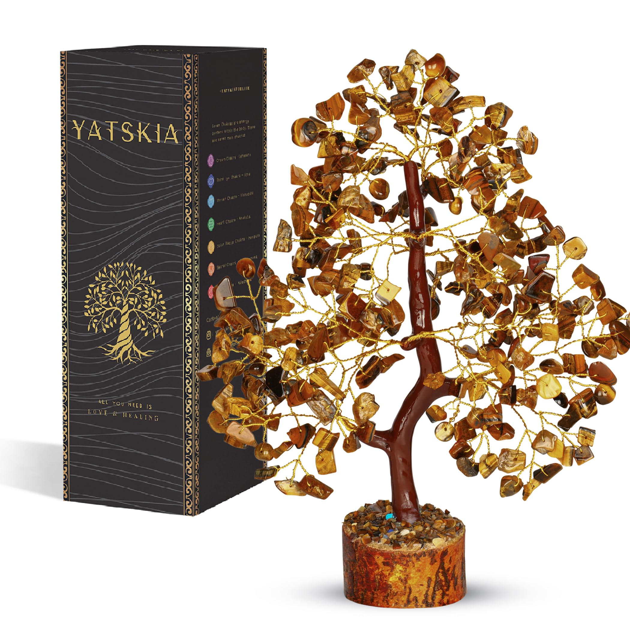 An Elegant Home Room Decor Item - Reiki tiger eye crystal on this beautiful divine tree is a unique sight catchy pleasing crystal. Making it a colorful and elegant decor item. You can use this feng shui buddhist figurine for room decor, home office decor, spiritual room decor, desk decorations, chakra wall decor, pretty home decor, center table decorations for living room, knick knacks home decor, crystals, and healing stones decor, buddhist decor, etc.