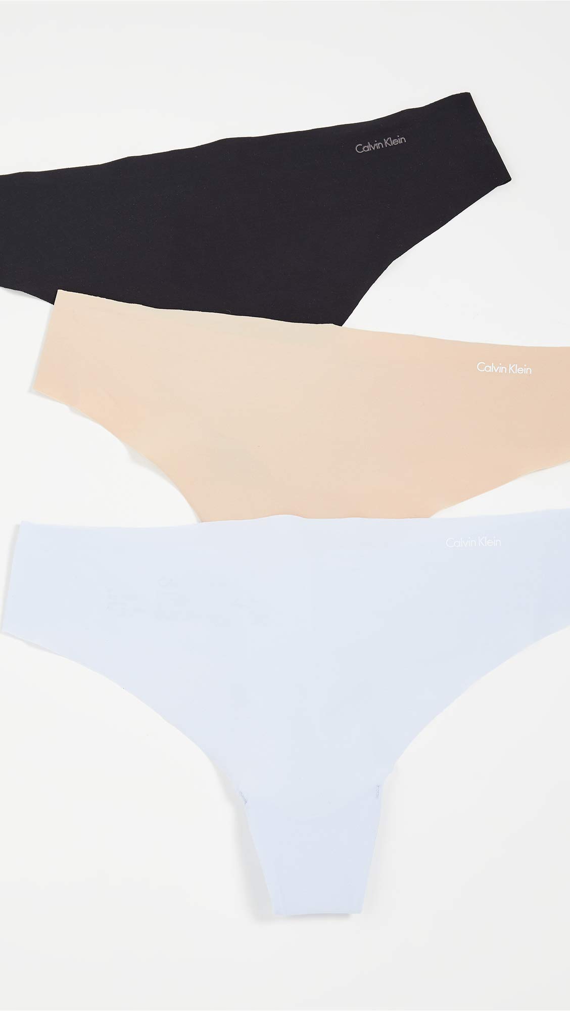 LIGHTWEIGHT AND LINE FREE: Made from ultra-smooth microfiber, Calvin Klein’s seamless, elastic-free thong underwear for women has clean cut lines that flatter under any bottom and don’t dig or pull.