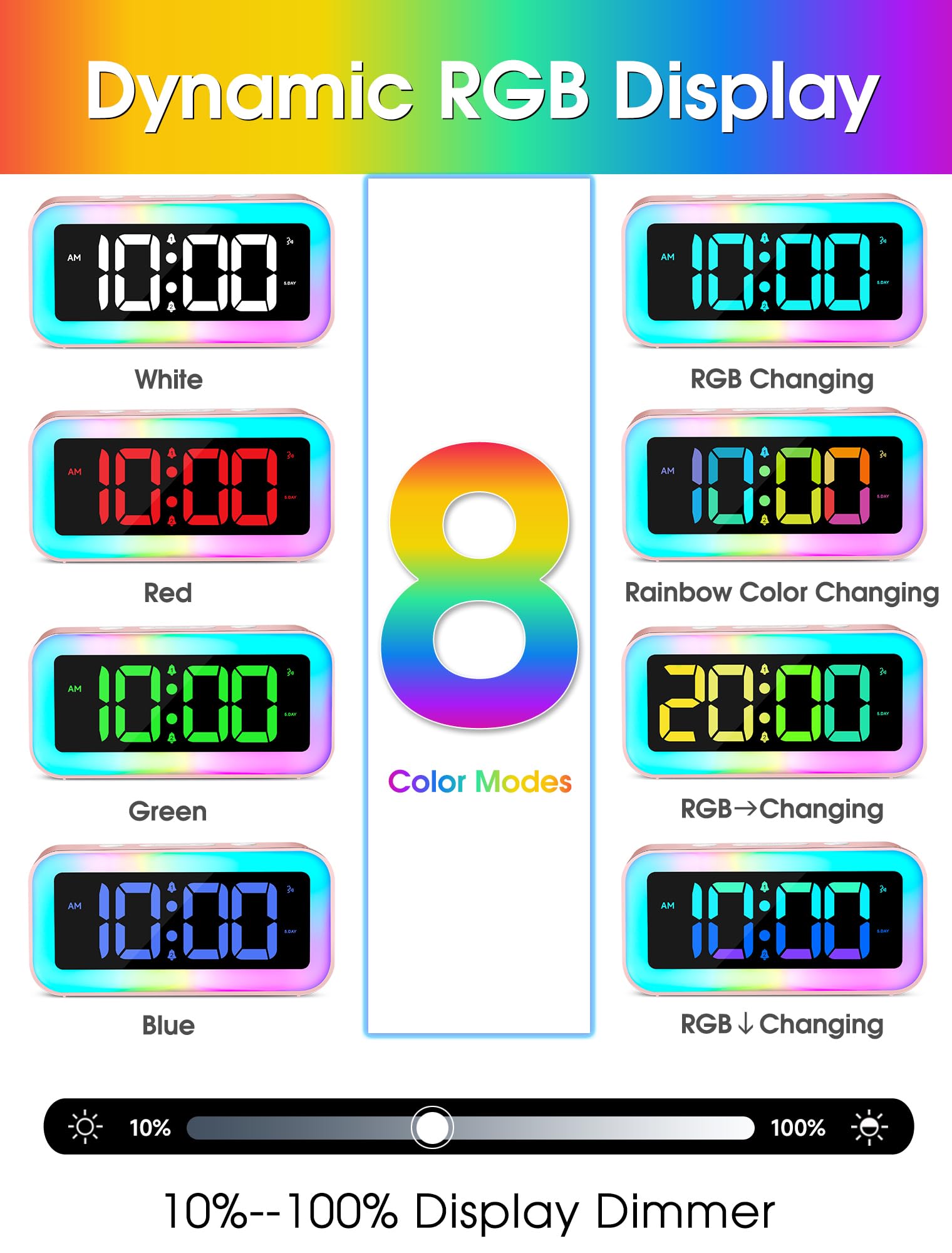 8 Colors Rgb Digital Display: Dynamic RGB color changing display with 4 regular colors and 4 dynamic RGB colors modes,Adjustable brightness from 10% to 100%