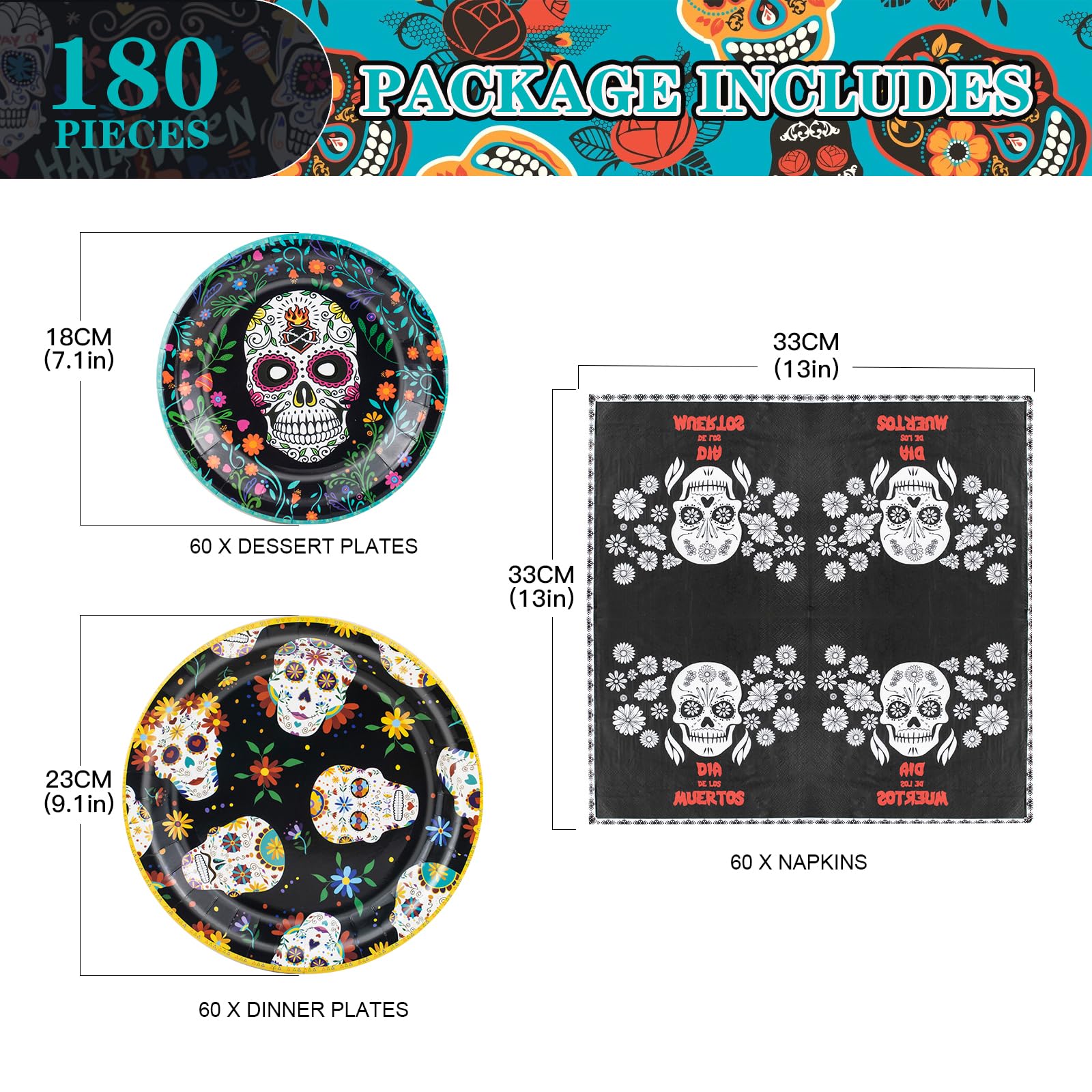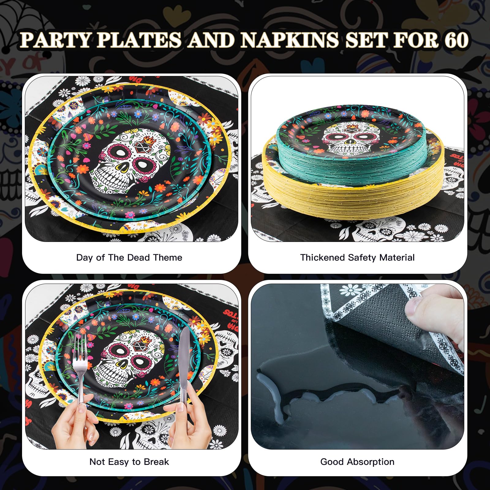 180 Pcs Plates and Napkins Set: This set includes 60 dinner plates (9.1"), 60 dessert plates (7.1"), and 60 napkins, perfect for serving up to 60 guests. From casual dinners to large celebrations, this all-in-one solution ensures a stylish, hassle-free dining experience every time