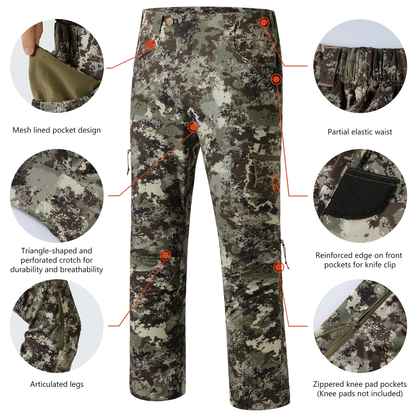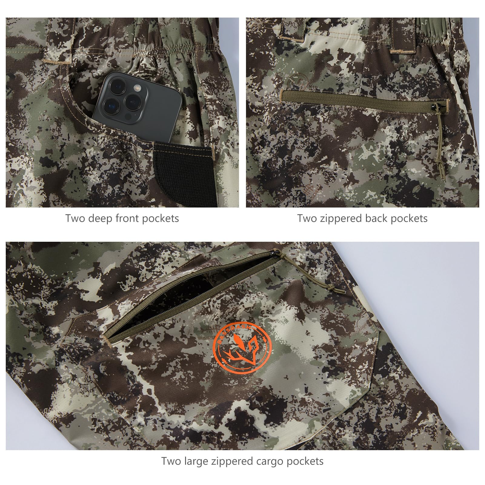 Made of woven, silent, four-way stretch fabric with water resistant and anti-odor treatment that offers durability, freedom of movement and fresh comfort; You can stay outside for as long as you need to without worrying about odor; Bassdash unique concealing camo colors
