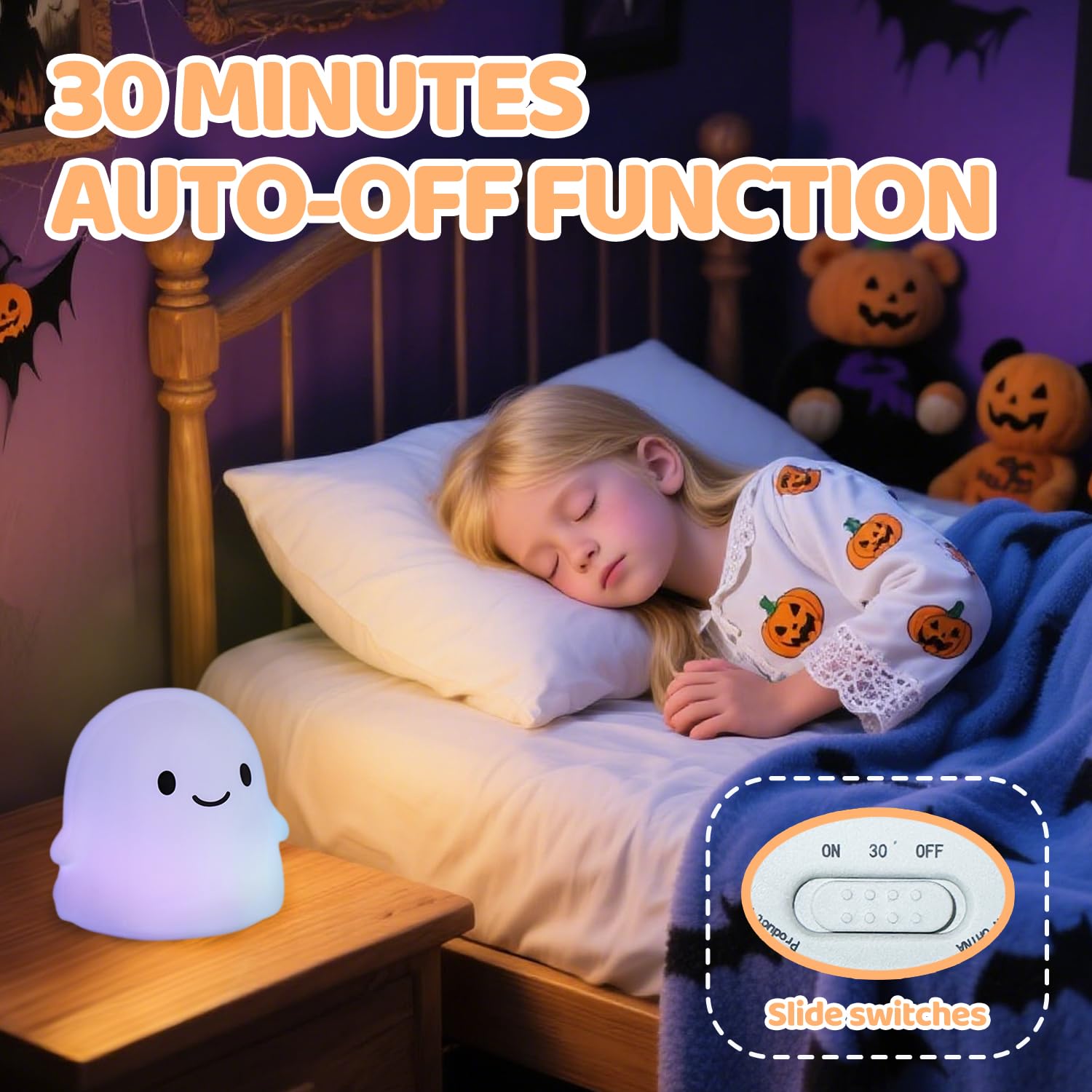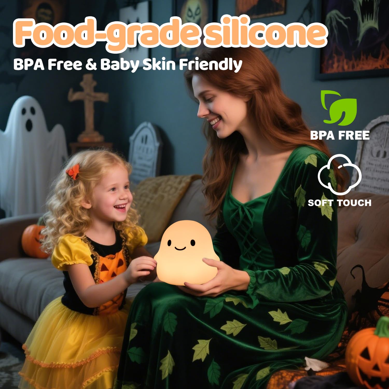 A Halloween Must-Have: This ghost night light is like a friendly phantom crashing your Halloween party—its cute, plump ghost shape adds just the right mix of spooky and sweet to your decor. Whether sitting on the porch with pumpkins or glowing on the living room shelf, it’s the star of your Halloween setup, turning ordinary spaces into a whimsical haunted haven.