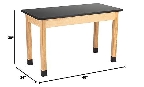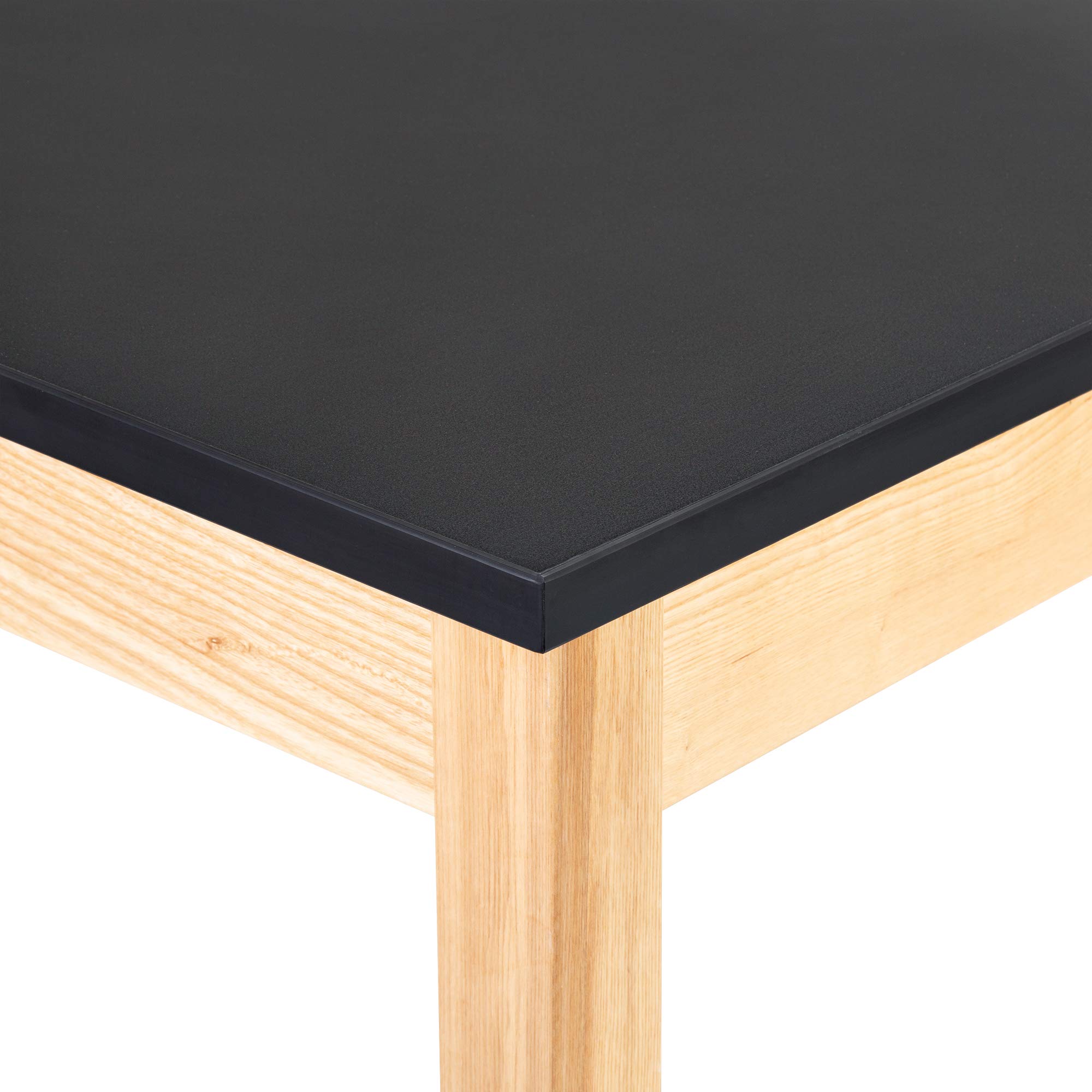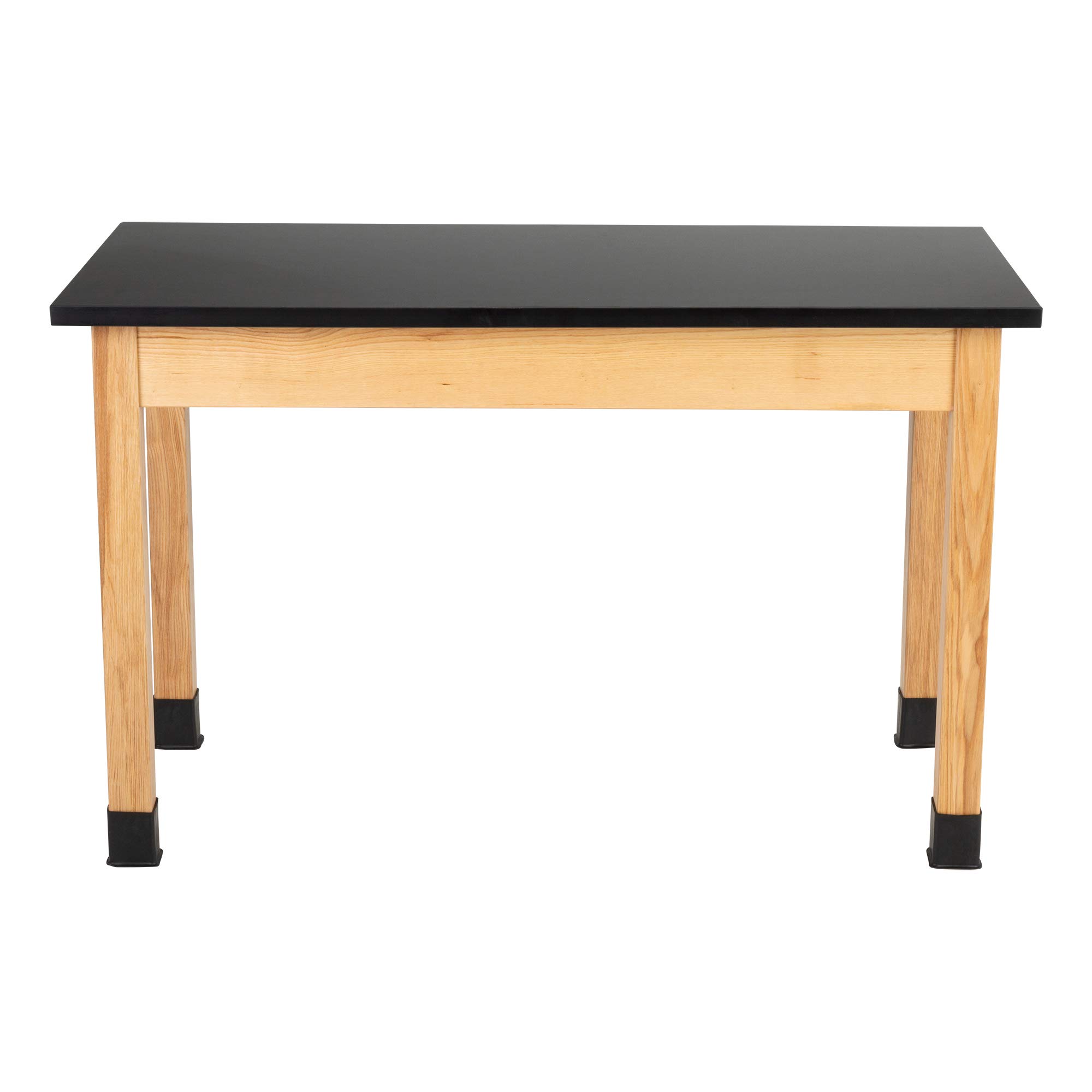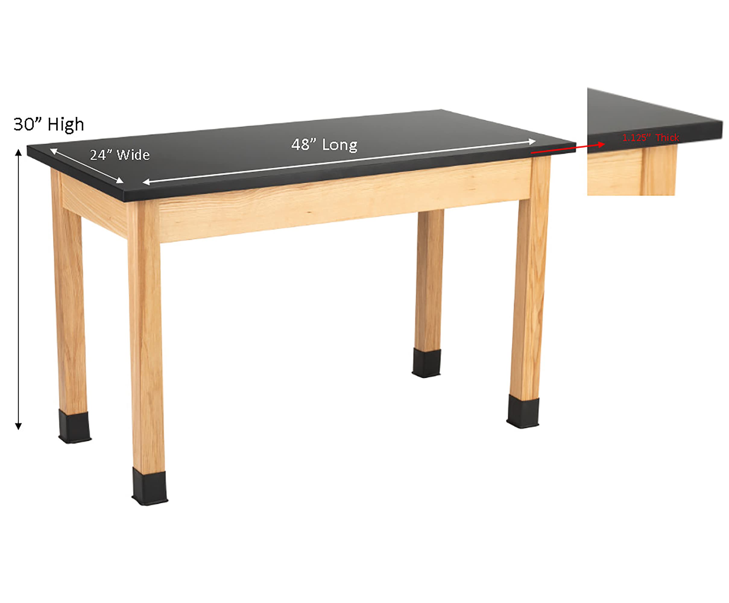 Science Lab Table w/ Chemical Resistant Top adds ultra-durable workspace to any science lab. The solid ash wood frame withstands years of heavy use, and the chemical-resistant top with MDF core is impervious to most commonly used lab chemicals. Thirteen-gauge, steel corner braces attach the legs for even greater durability, while adjustable glides prevent the table from wobbling on uneven floors. Thick rubber leg boots protect the table from spills. Meets MAS Certified Green environmental industrial standards.