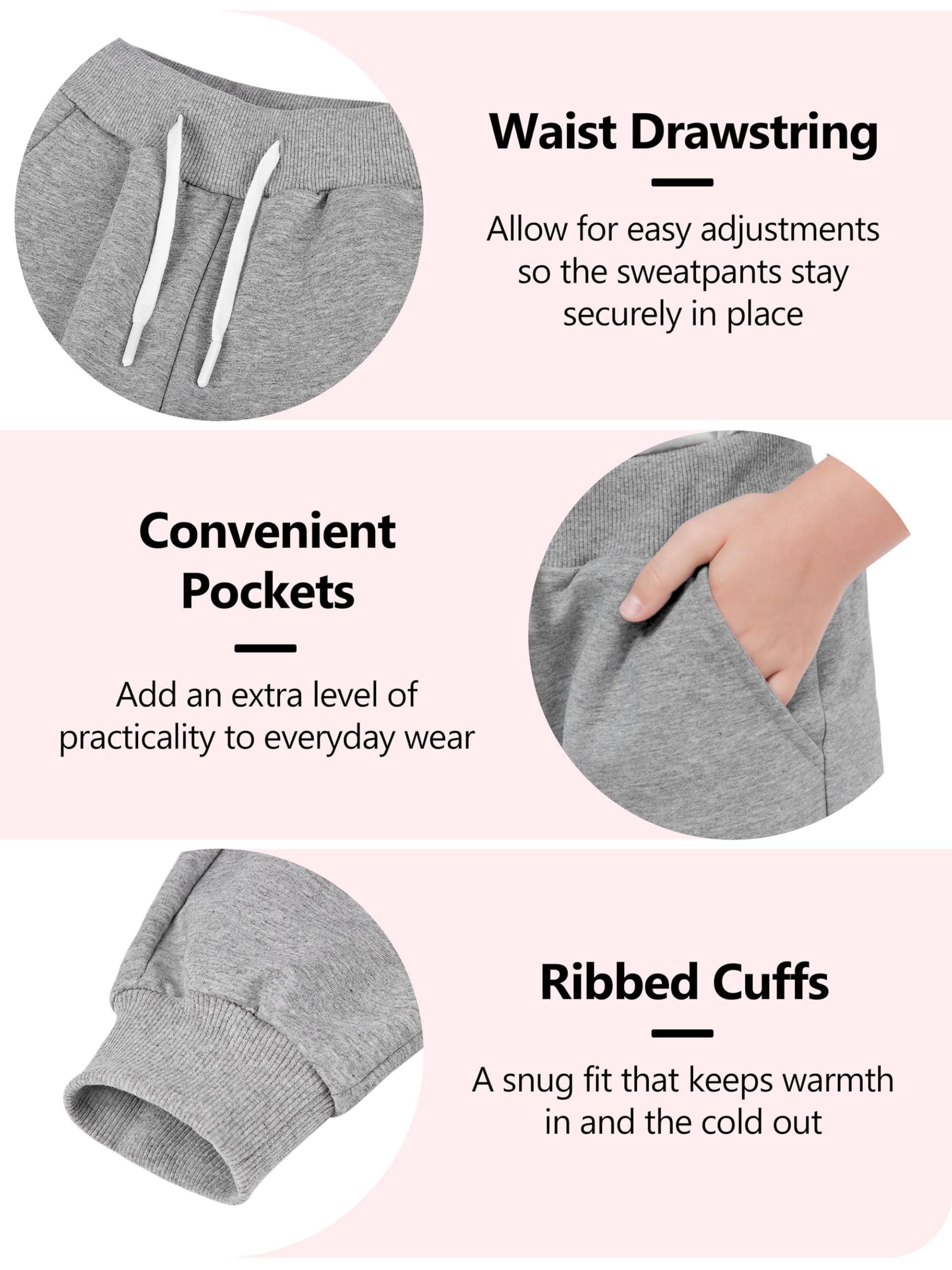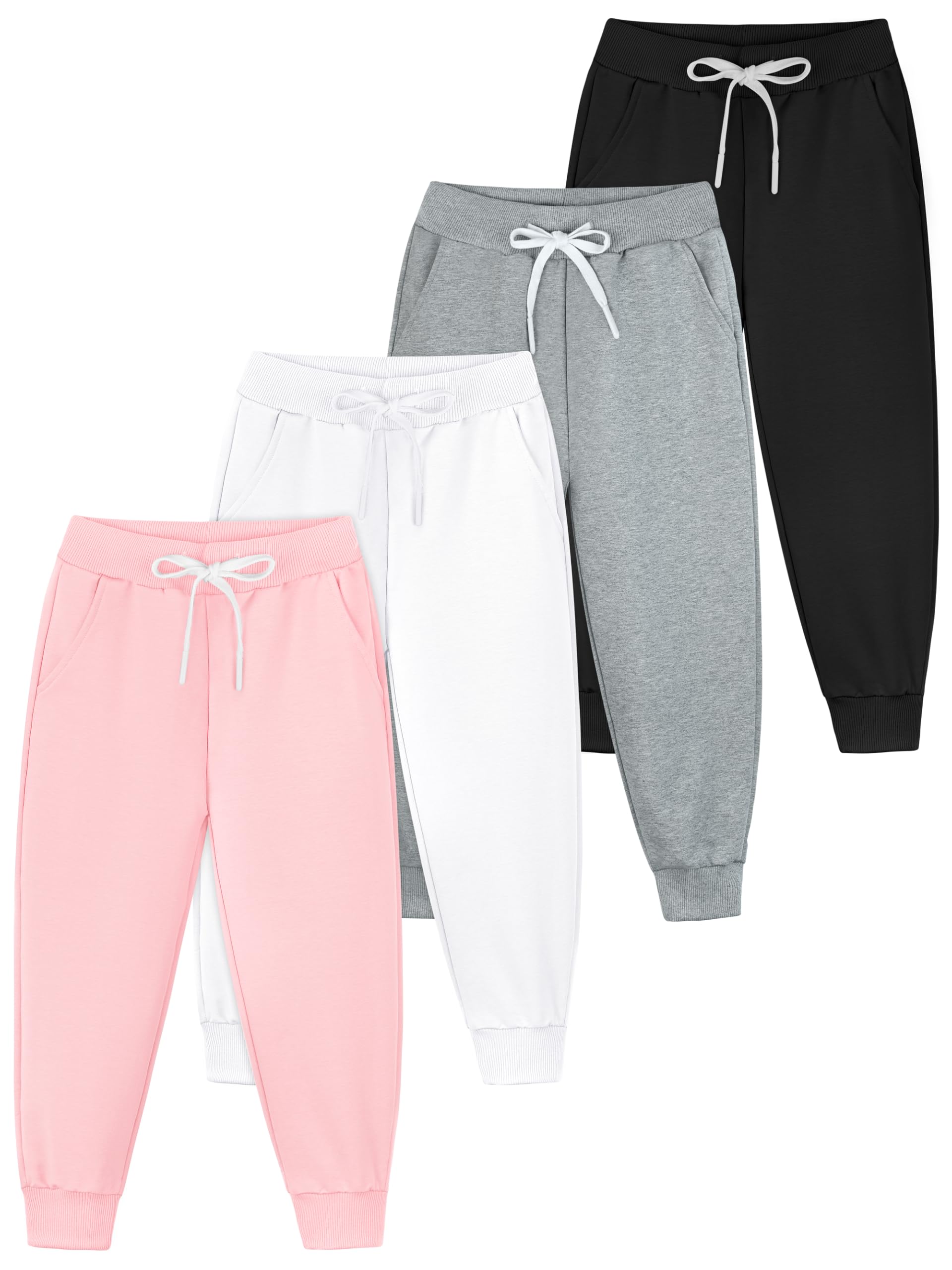 4-Pack Sweatpants: This set contains 4 pieces of girls' sweatpants, catering to girls aged 2 to 12 years old. We offer a wide range of sizes to offer a great fit for your girl. Whether your little one is a toddler or approaching their teenage years, you can find the right size in our collection.