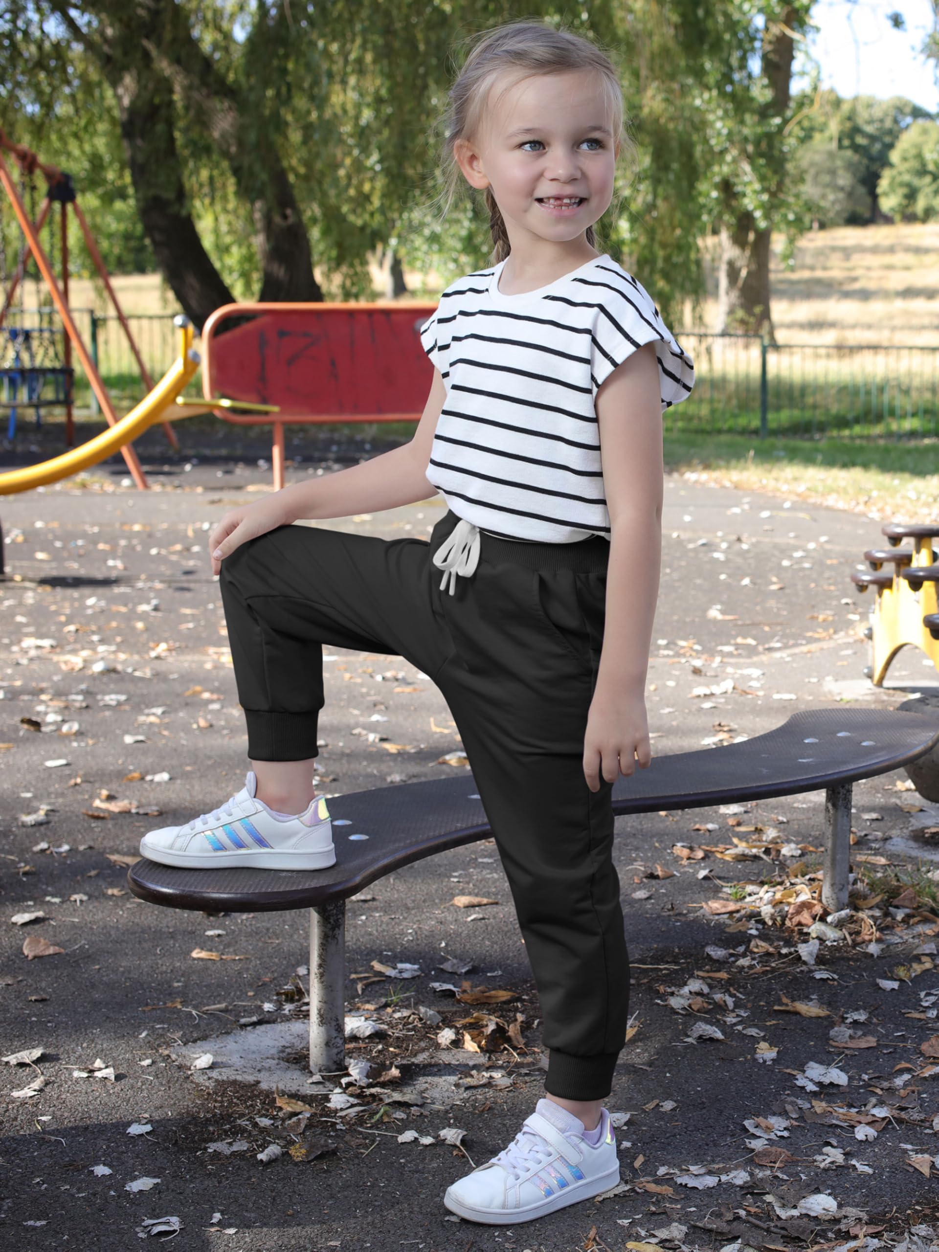 Convenient Design: The sweatpants feature an elastic waistband for a snug fit, complete with a drawstring for added adjustability. Additionally, they are equipped with convenient pockets, making them practical for girls to carry small items. The thoughtful design focuses on meeting the needs of active children, combining comfort with functionality.