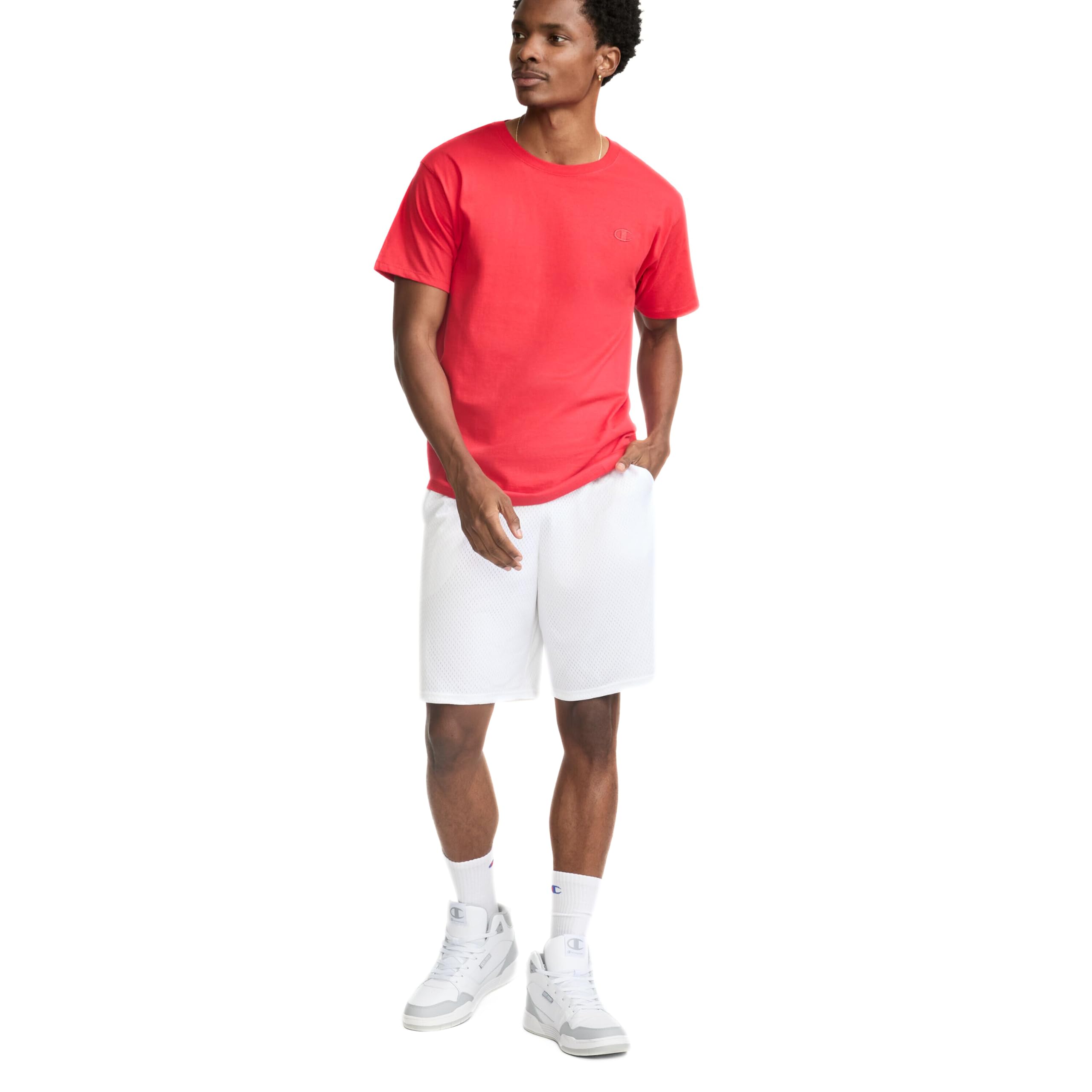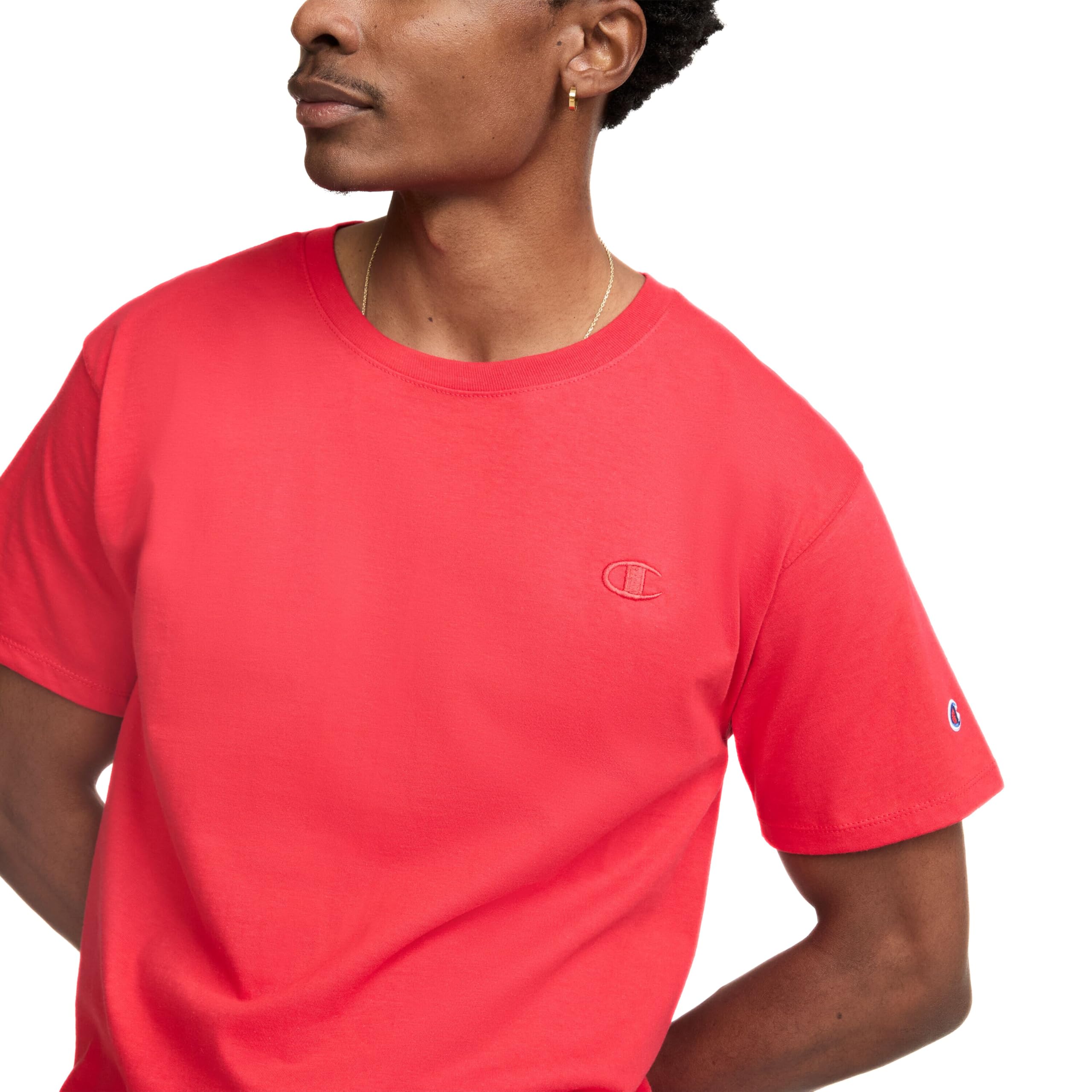 Description TIMELESS THREADS. Add lived-in comfort to your daily rotation with this T-shirt for men, expertly crafted from a soft cotton or cotton blend. Cut for a standard fit, it's detailed with a shape-holding ribbed crewneck, short sleeves, and matching back neck tape for no-irritation comfort. This classic men's T-shirt style is a must-have that pairs well with sweats and shorts for a rounded-out sporty look. Finished with the iconic C logo patch embroidered at the chest for an authentic look.