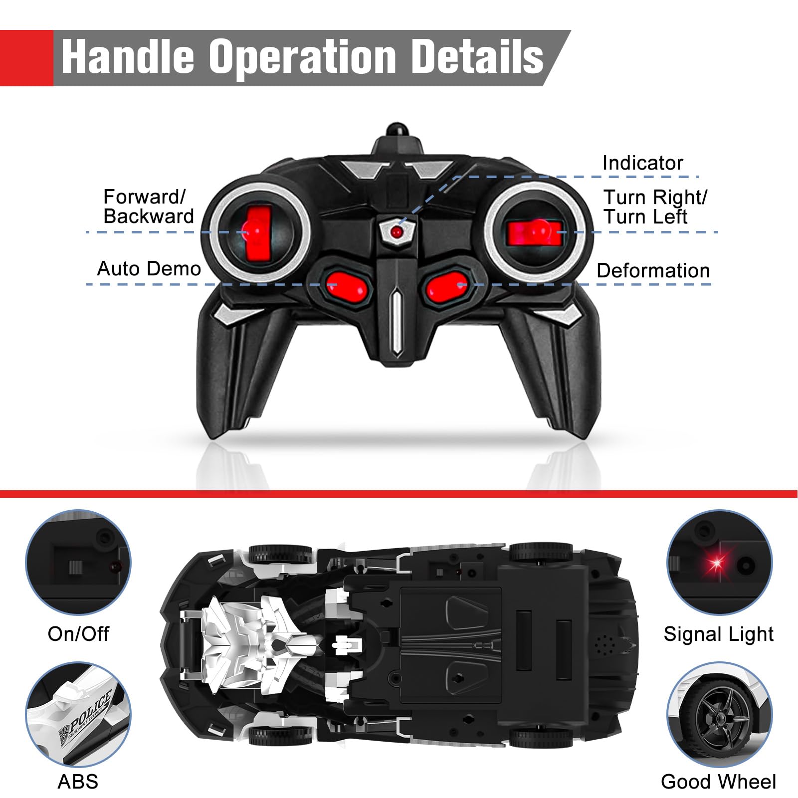 High-quality Rc Car Toy Gifts for Kids: Best gifts choice for your children. Package Content: 1*RC Transform Car, 1*Remote Controller, 1*Screwdriver, 1*Car Battery, 1*Car Battery Charger.