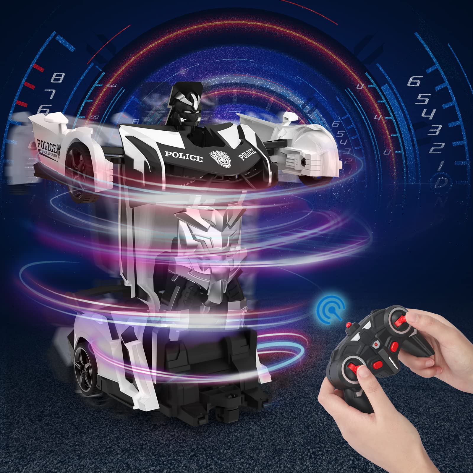 Intelligent RC Cars with 360° Rotation for Boys: 2 Option for Transform. It can transform automatically from car to robot when you press the button on the controller. Transforms back and forth so easily and quite awesome.