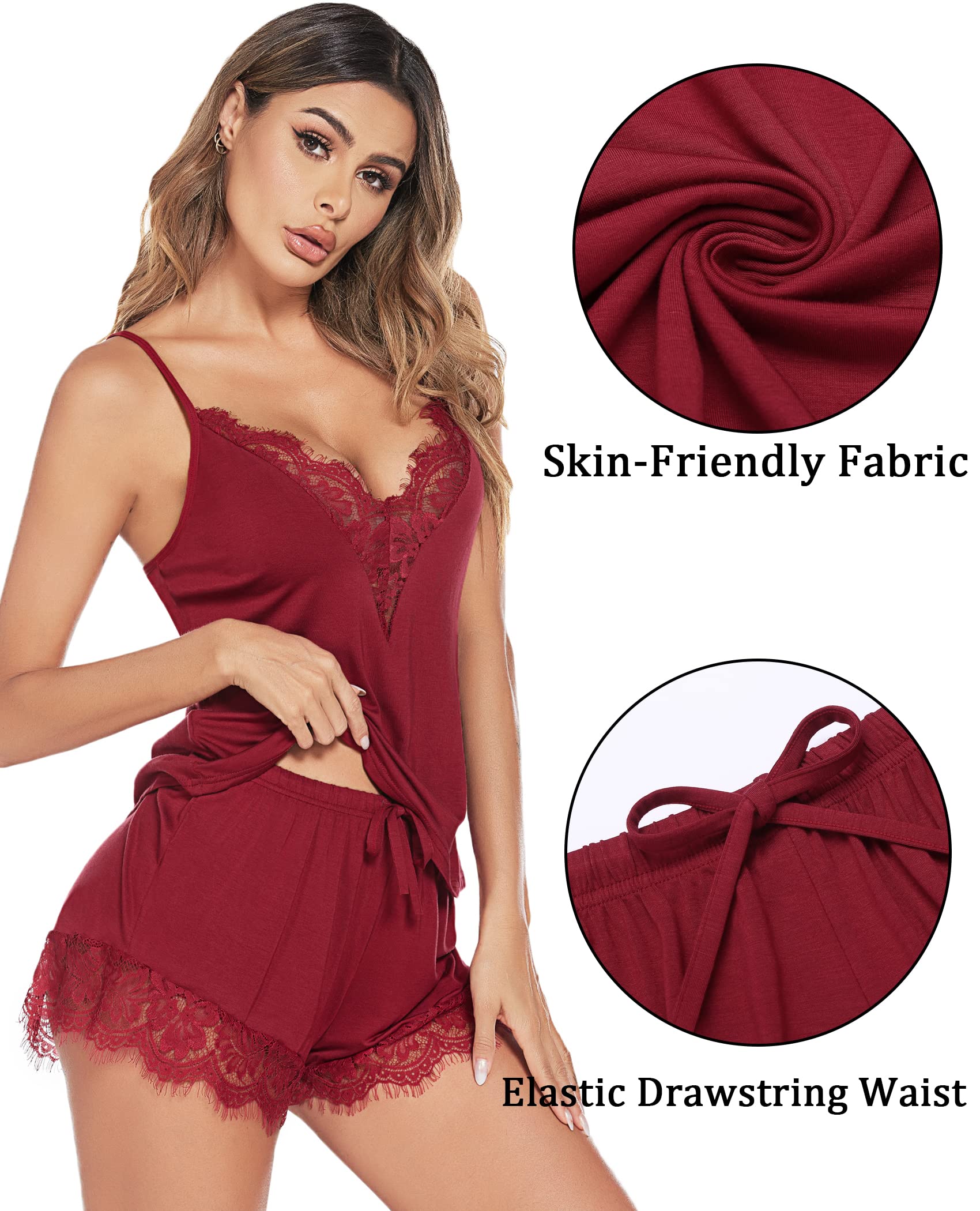 【Sexy Pajamas】: Pajamas for women shorts set top is designed with sexy v neck lace trim, cami adjustable spaghetti strap for easy wearing and adjustment to the comfort position you want, make you comfort, sexy in the night